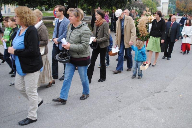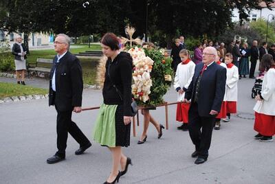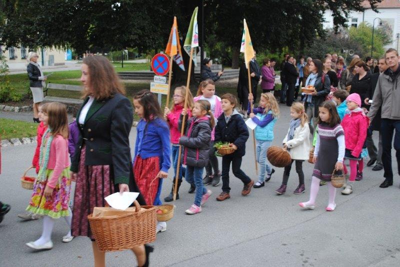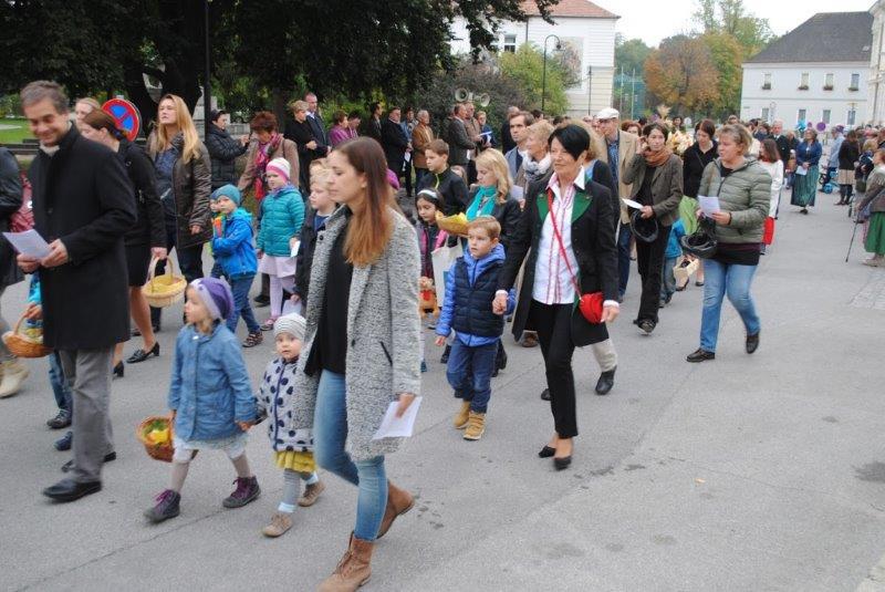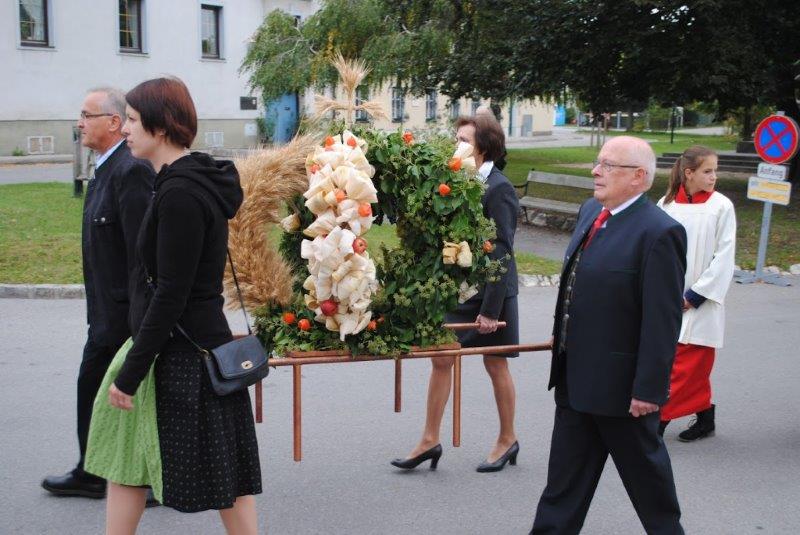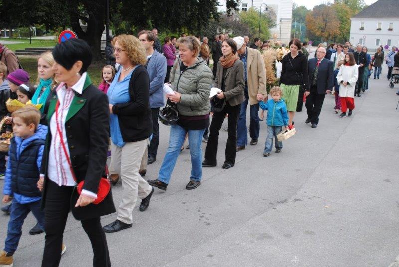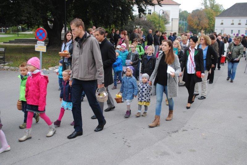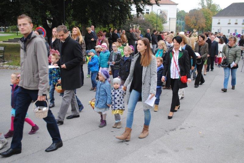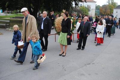 Am Sonntag beging die Wolkersdorfer Pfarrgemeinde das Erntedankfest. Am Kirchenplatz wurde die Erntekrone gesegnet und in der Pfarrkirche feierte Pfarrer Leopold Mathias mit der Pfarrgemeinde den Dankgottesdienst. Im Anschluss traf sich die Gemeinde beim Pfarrfrühschoppen im Pfarrzentrum. Den Abschluss bildete die Tiersegung vor dem Pfarrzentrum.