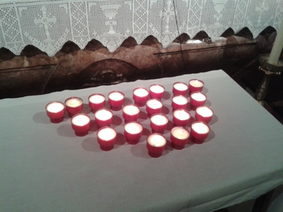 Zu Allerseelen brennt in unserer Kirche die Osterkerze als Zeichen der Auferstehung. Die Osterkerze ist ein Symbol für die Auferstehung. Und deshalb sind die Kerzen auf den Gräbern vom ursprünglichen Sinn her auch „Osterkerzen“. Zum Gedenken aller, die seit Allerseelen 2014 uns auf dem Weg zum Ziel unseres Lebens, zu Gott, vorausgegangen sind, wurde bei der hl. Messe eine Kerze entzündet und ihrer gedacht. Wir sagten damit Danke: Danke, dass sie unser Leben bereichert haben.