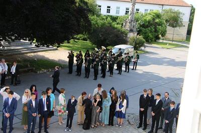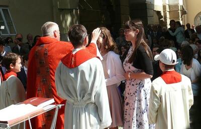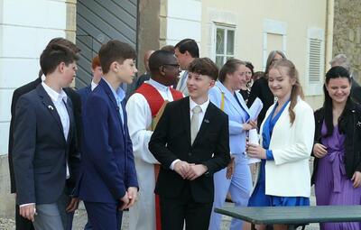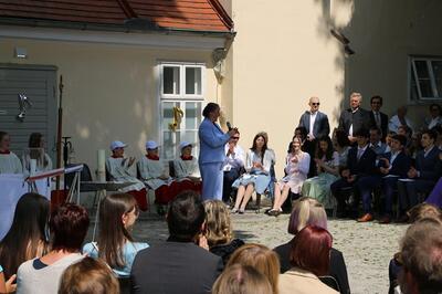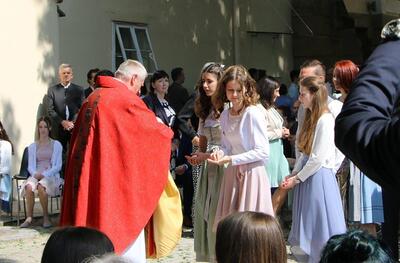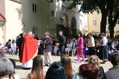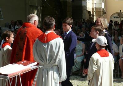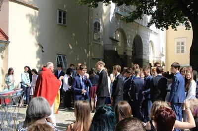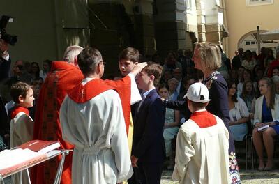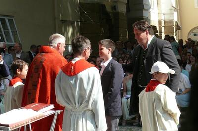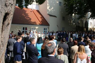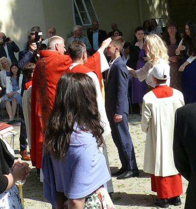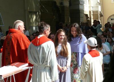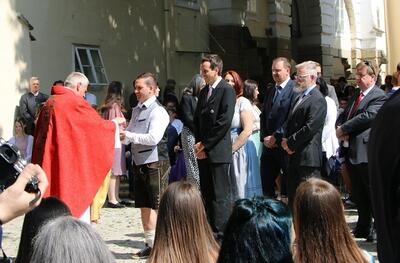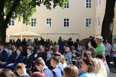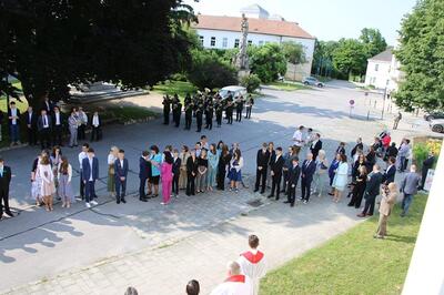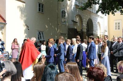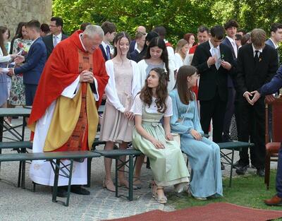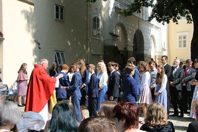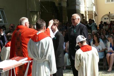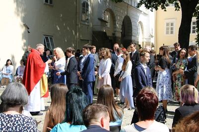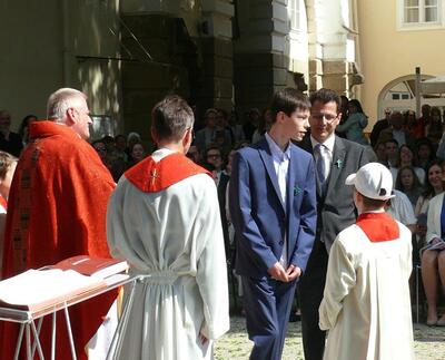 Bei sprichwörtlichem Kaiserwetter spendete Mag. Martin Leitner (Direktor des Leopoldinums in Heiligenkreuz) unseren 33 Kandidatinnen und Kandidaten im Hof des Schlosses Wolkersdorf das Sakrament der Firmung.