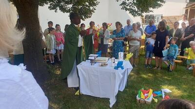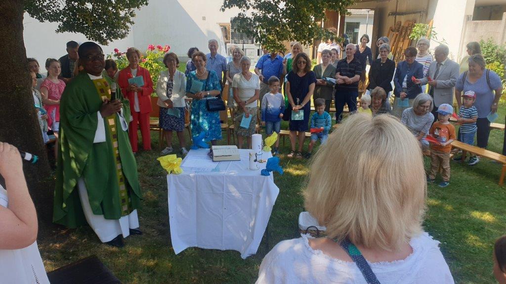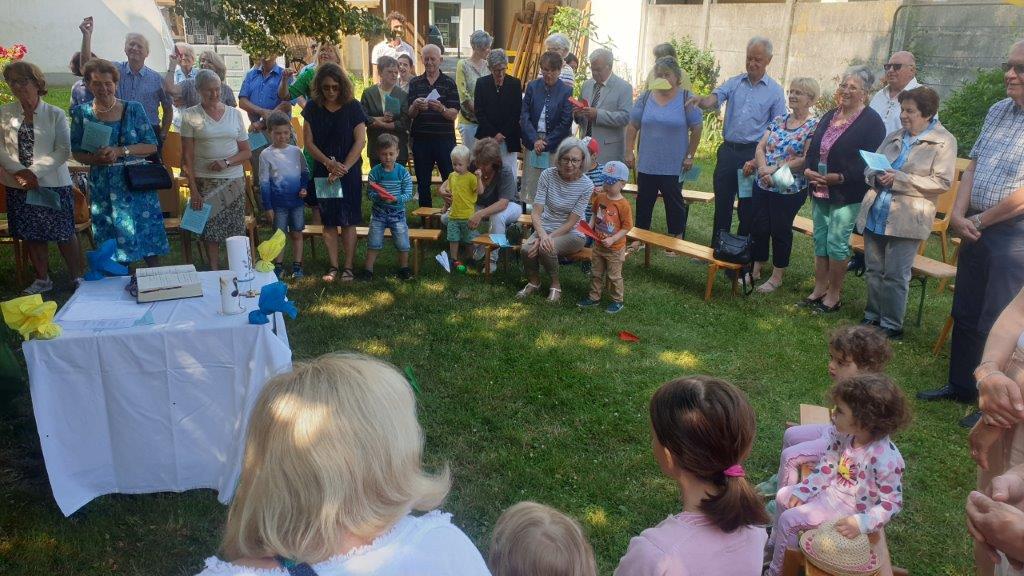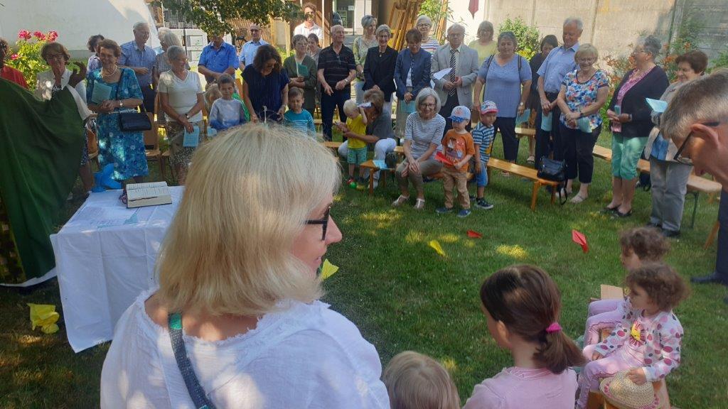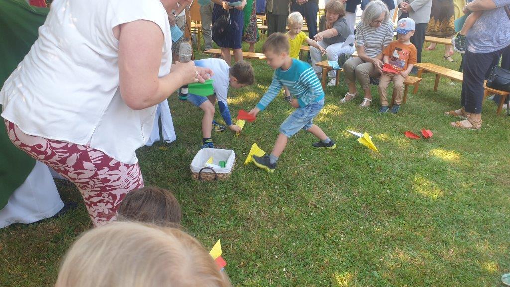 Die persönlichen Fürbitten wurden von den Anwesenden auf bunte Zettel geschrieben und dann zu Papierfliegern gefaltet. Vor der Gabenbereitung flogen die Kunstwerke Richtung Altar, die Kinder sammelten sie in einen Korb und einige Bitten wurden laut vorgelesen – alle aber waren beim Gottesdienst dabei.