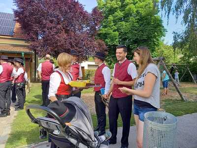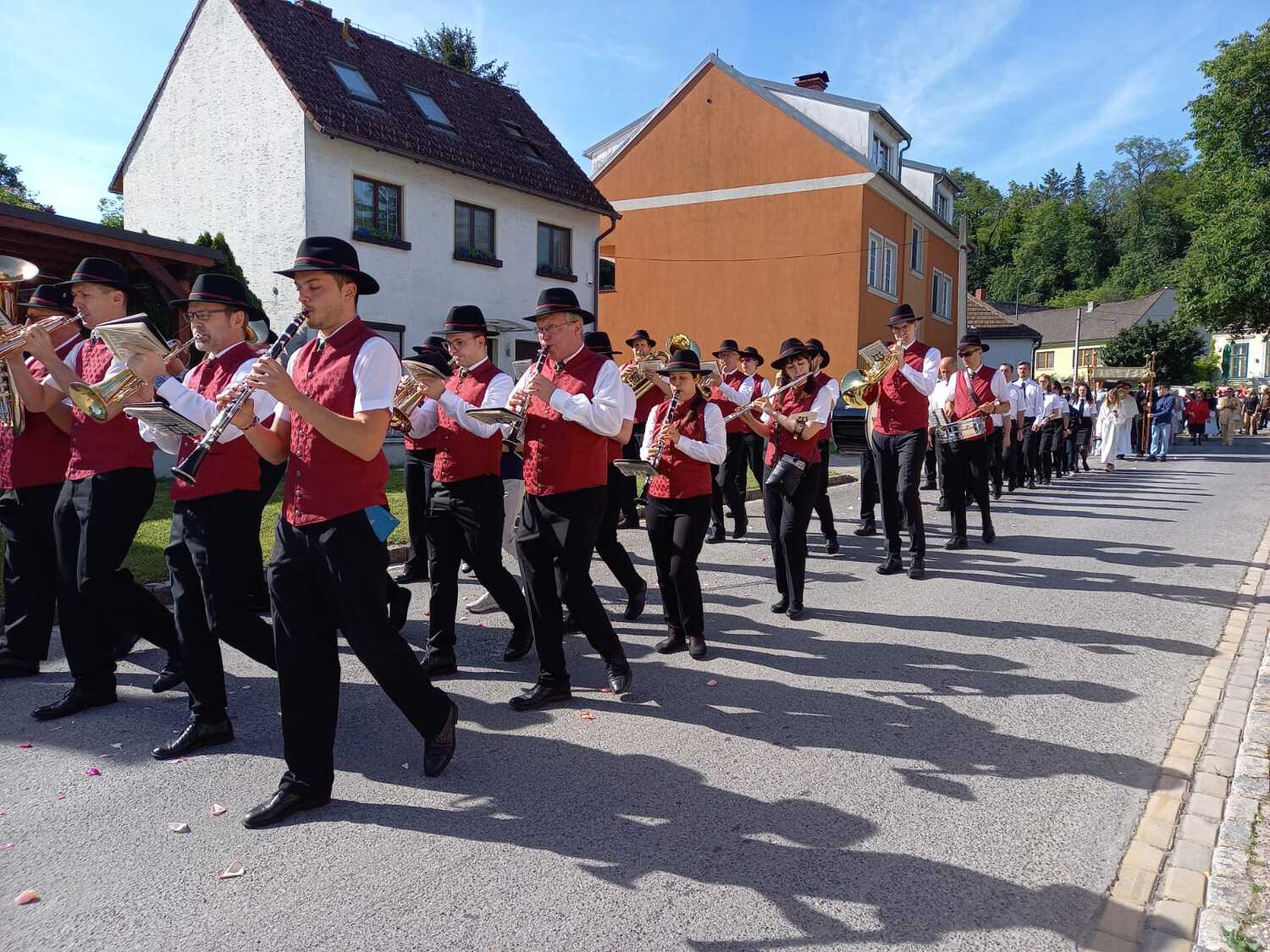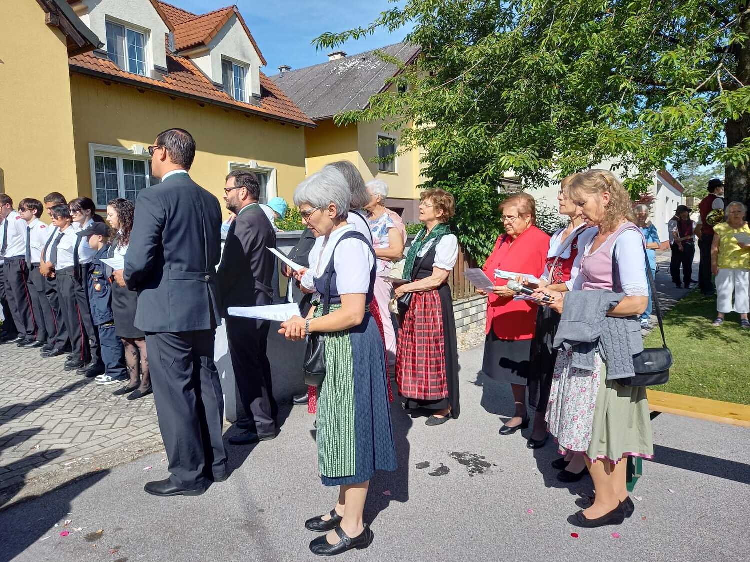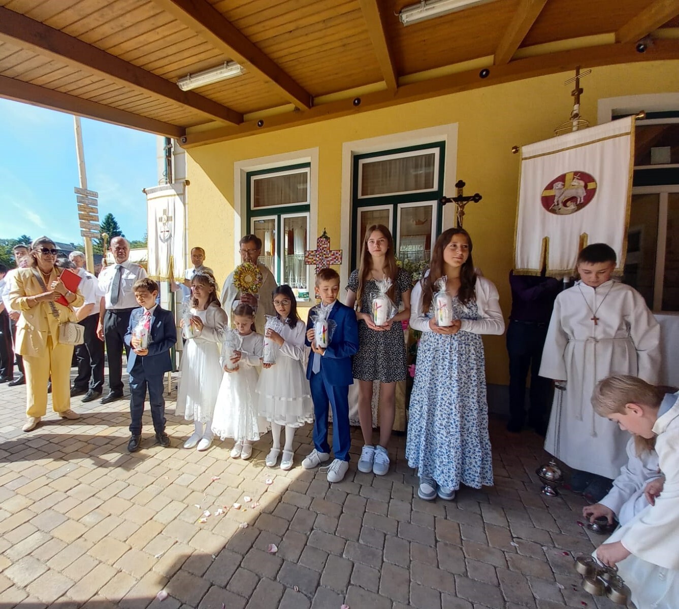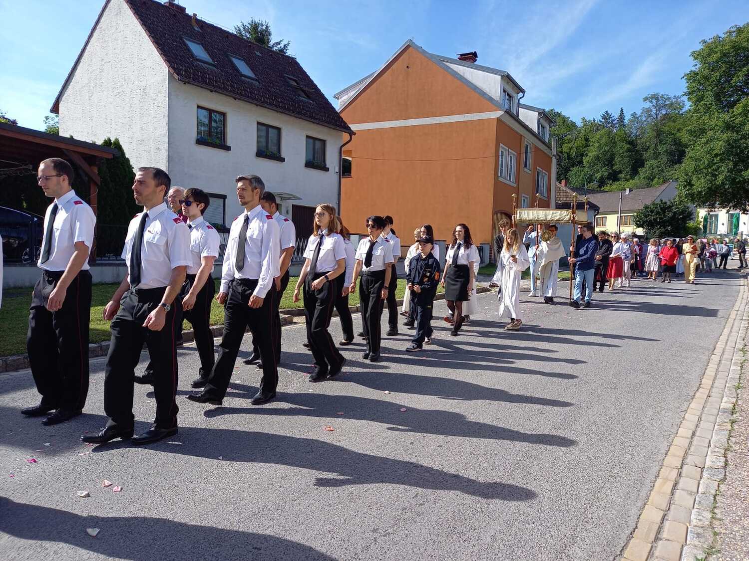 Nach Feier der Hl. Messe in der Kirche, zogen wir in Prozession durch den Ort zu den vier Altären. Beim letzten Altar wurden die 5 Erstkommunionkinder und 2 Firmlinge aus Riedenthal vorgestellt. Mit einer Agape beim Dorfhaus fand die schöne Feier einen gemütlichen Ausklang. Großen Dank: Pfarrer Leopold, den Vereinen für die Gestaltung der Altäre, der FF Riedenthal, sowie der Stadtkapelle für die feierliche musikalische Umrahmung der Prozession.