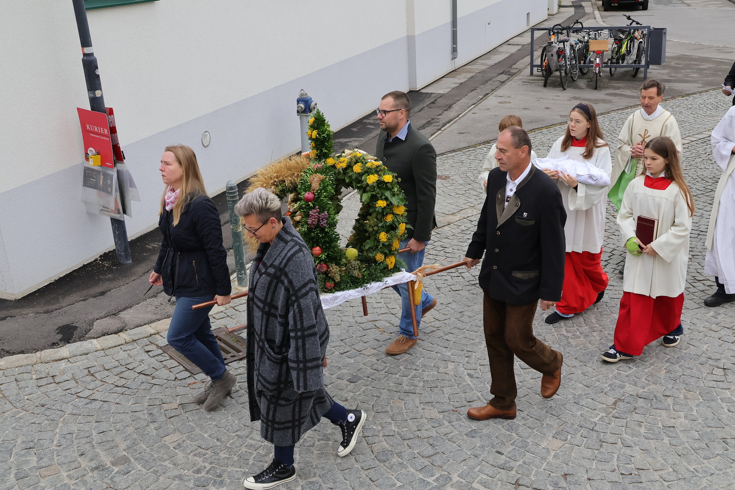 In festlicher Atmosphäre begann der Tag mit der Segnung der prachtvollen Erntekrone sowie der liebevoll gestalteten Erntegaben. Ein Dank gilt der Stadtkapelle Wolkersdorf, die mit ihrer stimmungsvollen musikalischen Begleitung die Feierlichkeiten wunderbar umrahmte.