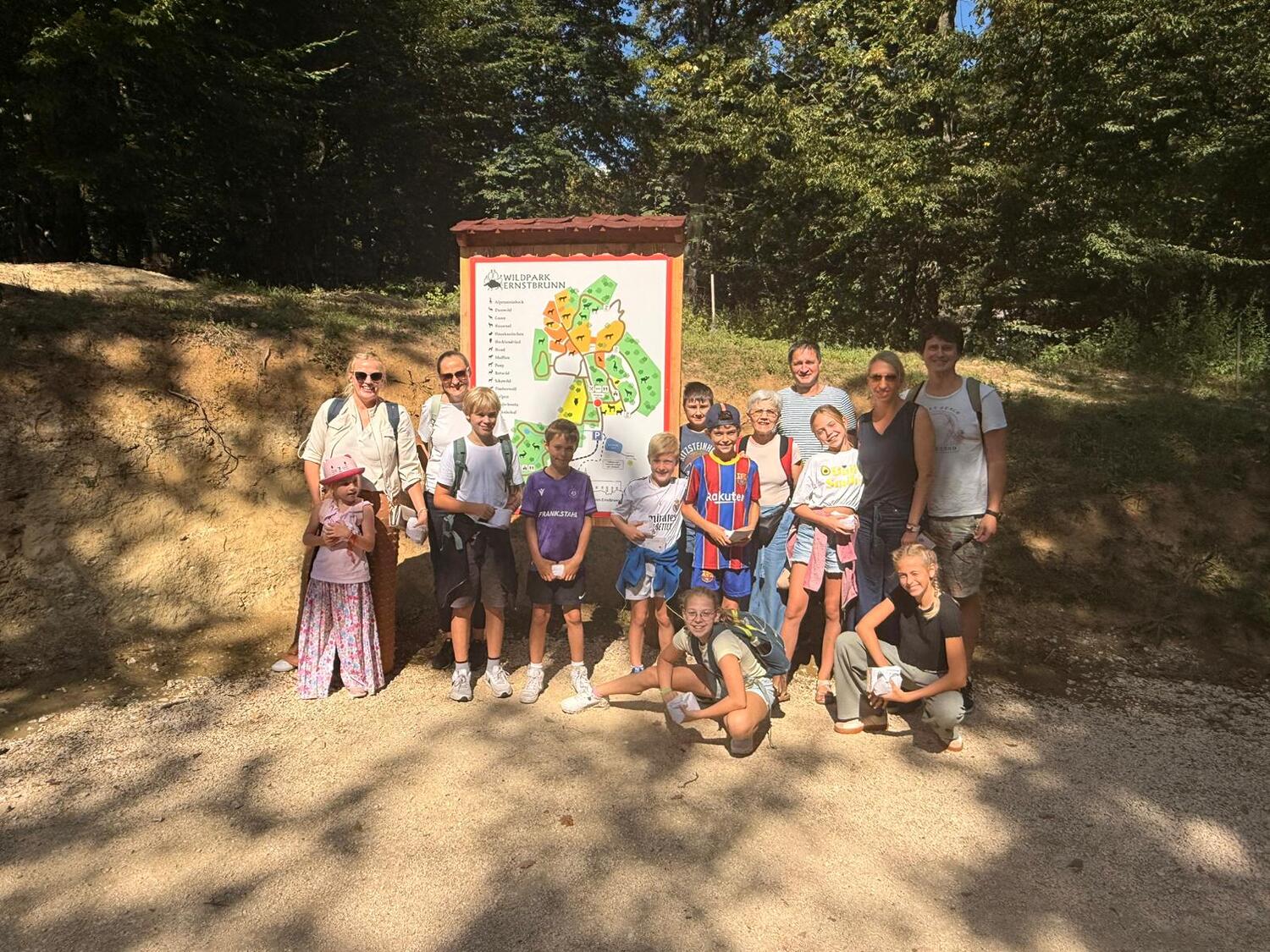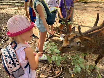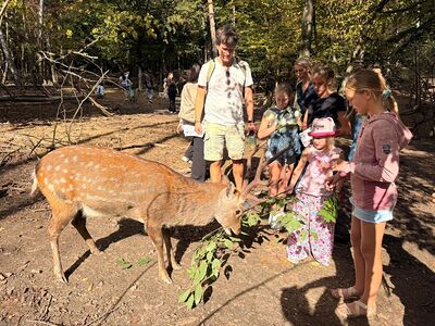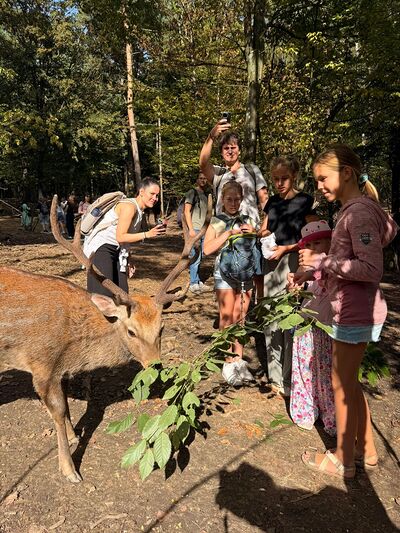 So startete eine Gruppe von 9 Kindern mit Begleitpersonen um 11.30 Uhr nach Ernstbrunn zu einem gemeinsamen Mittagessen in der Pizzeria. Nachdem alle gestärkt waren ging es in den Ernstbrunner Wildpark. Wir hatten Glück und das Wetter hielt den ganzen Nachmittag an, sodass wir durch den Park spazieren und die verschiedensten Tiere – Schafe, Wildschweine, Steinböcke, Gämsen, Wölfe, Muflons, Damwild, Hirsche – in den Gehegen und auch frei beobachten und füttern konnten. Natürlich wurde auch der Spielplatz besucht - alle hatten viel Vergnügen dabei. Zum Abschluss gab’s noch einen Ausklang im Garten bei Eis, Kuchen, Spiel und Spaß.