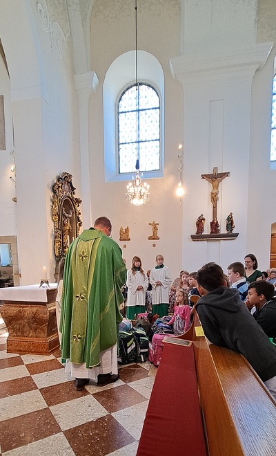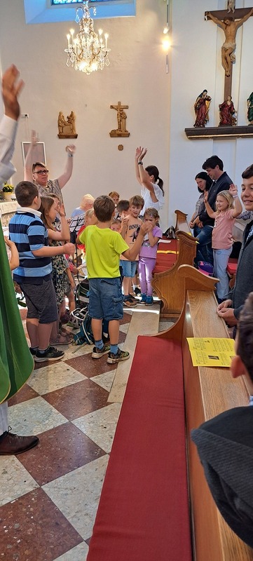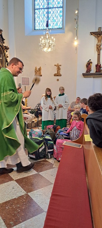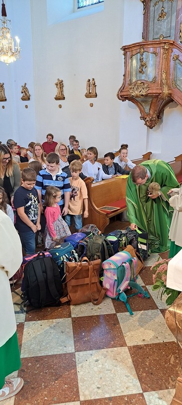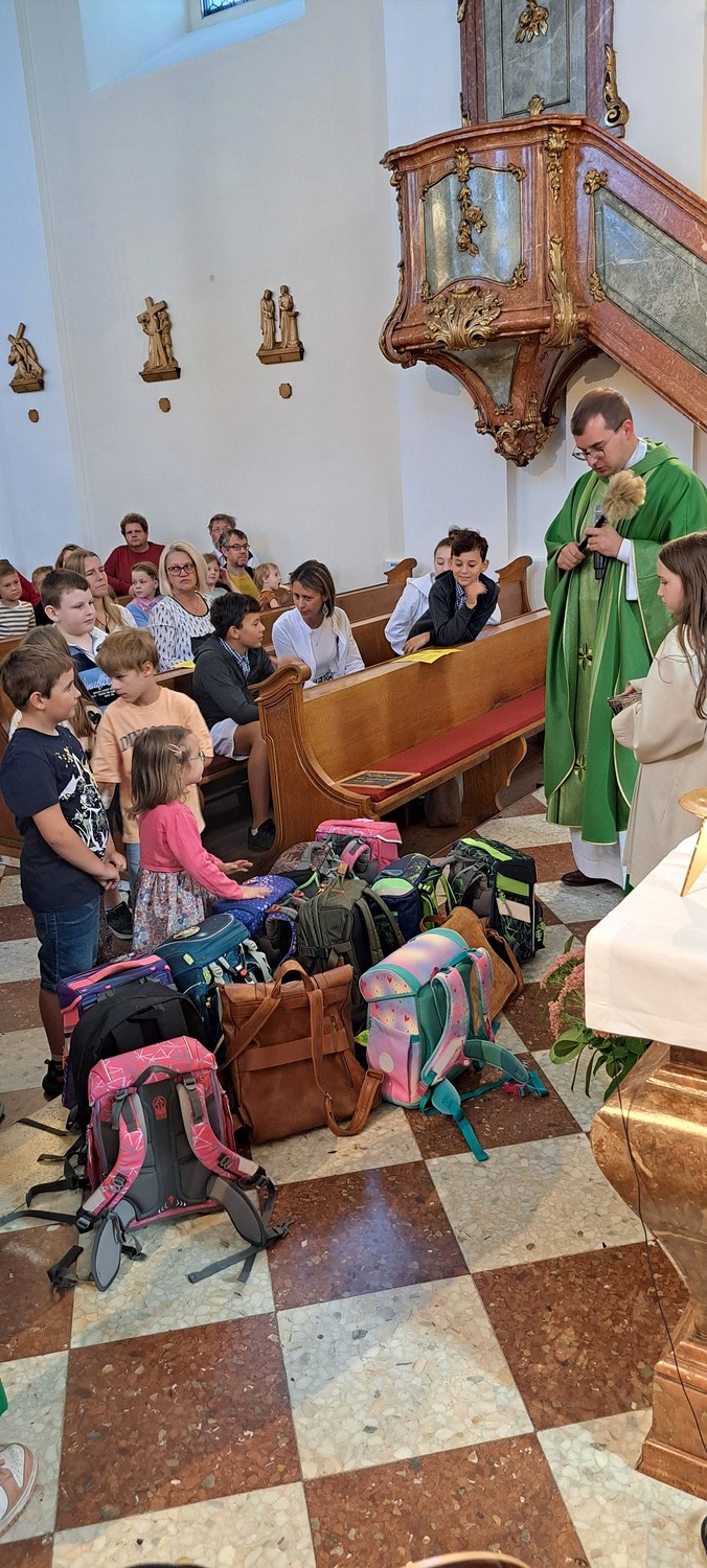Unter dem Motto „Mit Gott gehen wir durch das Schuljahr“ feierten wir in unserer Pfarre eine Schultaschensegnung. Pfarrprovisor Thorsten gestaltete den Gottesdienst auf besonders herzliche und lebendige Weise: Er trat mit den Kindern in einen Dialog, bezog Eltern und Großeltern mit ein und schuf so eine Atmosphäre voller Gemeinschaft und Freude.