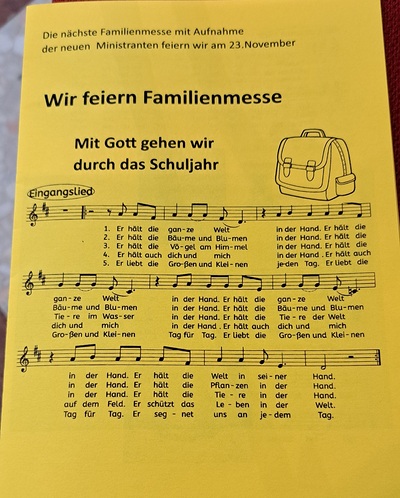 Für die musikalische Gestaltung danken wir herzlich: Die Lieder – unter anderem „Du gibst mir Rückenwind“ und „Er hält die ganze Welt in seiner Hand“ – trugen viel zur festlichen Stimmung bei. Ein Dank gilt auch den vielen kreativen Köpfen, die sich eingebracht haben, etwa der Effatagruppe u.a. Ingrid Mayr und Iris Strobl, um nur einige zu nennen. Es war ein wunderschöner, berührender Gottesdienst, der zum Feiern einlud. Alle Messbesucher – vom Kindergartenkind bis zum Erwachsenen – waren begeistert.