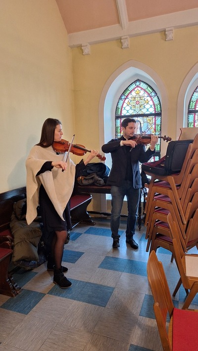 Frau Lisa Wambach und Hrn. Matthias Koller an den Geigen