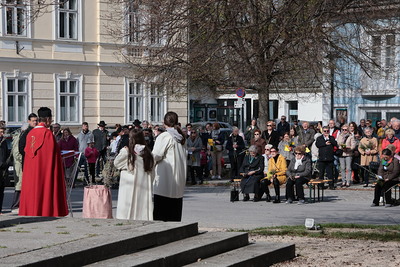 Der Palmsonntag, das Tor zur Heiligen Woche, begann mit der feierlichen Segnung der Palmzweige. Pfarrer Leopold sprach das Sonntagsevangelium. „Heute beginnt die wichtigste Woche im ganzen Jahr des christlichen Kalenders, die Tage von Leiden, Tod und Auferstehung“.