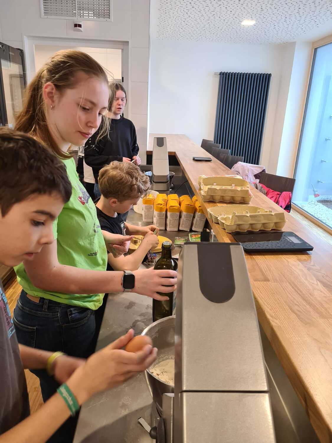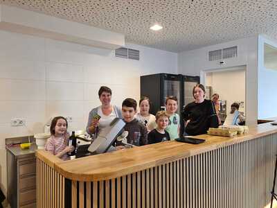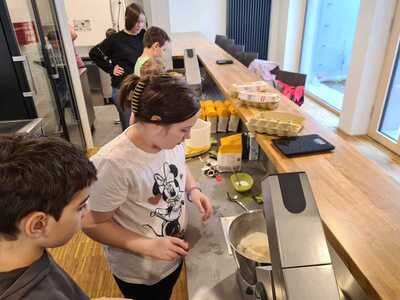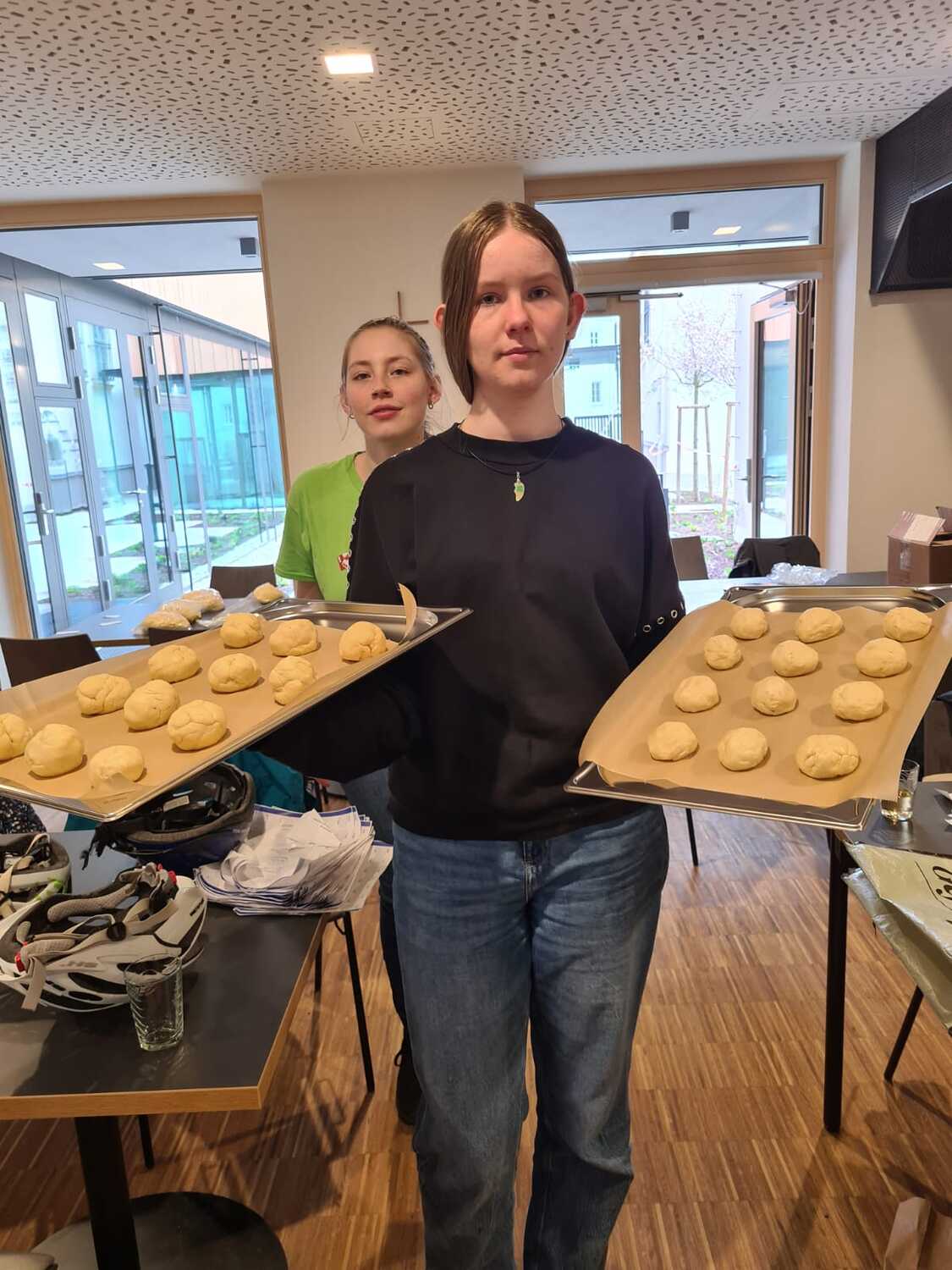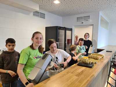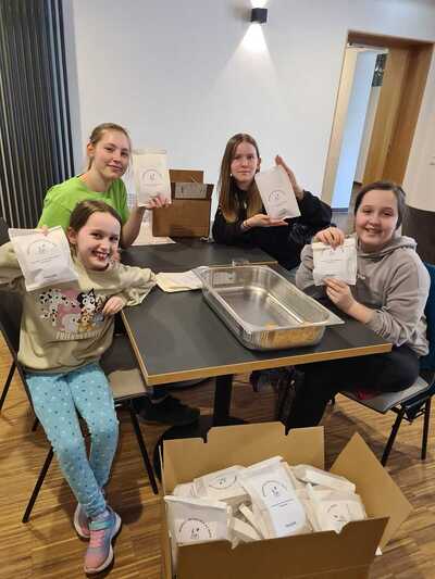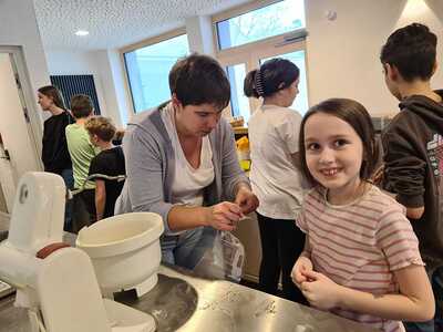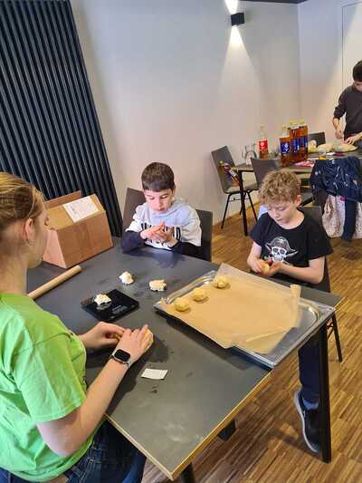 Viele fleißige Hände waren nötig, um die zahlreichen Minibrote zu backen! Insgesamt konnten über 600€ für die charitativen Projekte gesammelt werden!