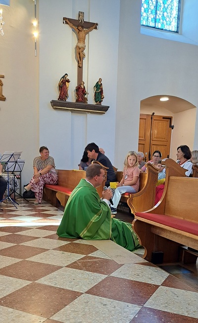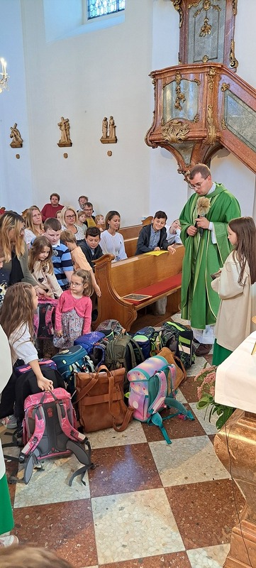 Unter dem Motto „Mit Gott gehen wir durch das Schuljahr“ feierten wir in unserer Pfarre eine Schultaschensegnung. Pfarrprovisor Thorsten gestaltete den Gottesdienst auf besonders herzliche und lebendige Weise: Er trat mit den Kindern in einen Dialog, bezog Eltern und Großeltern mit ein und schuf so eine Atmosphäre voller Gemeinschaft und Freude.