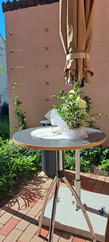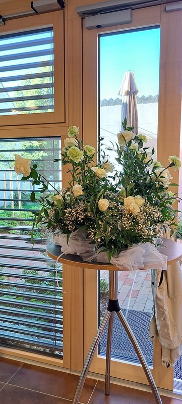 Danach lud die Bastelrunde Wolkersdorf, bestehend aus rund 20 Frauen, die sich einmal im Monat im Pfarrzentrum treffen, um für den Weihnachts- und Ostermarkt zu werken, herzlich zum Pfarrcafé ein. Es war sehr gut besucht und bot Gelegenheit zu Begegnung und Austausch. Neben köstlichem, selbstgemachtem Kuchen sorgte ein zauberhafter Blumenschmuck – ein Geschenk des Brautpaares von der Hochzeit am Vortag – für festliche Atmosphäre.