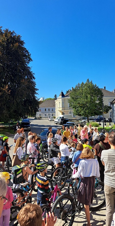 Im Anschluss an den Gottesdienst fand auch die Fahrradsegnung statt. Im Rahmen der Europäischen Mobilitätswoche wurden wir an diesem Tag ermutigt, den Weg in die Kirche bewusst mit dem Fahrrad zurückzulegen. Besonders auch die Kinder sind eingeladen worden, mit ihren Fahr- oder Laufrädern zu kommen und damit ein Zeichen für eine klimafreundliche Zukunft zu setzen. Alle, die ein Fahrrad mitgebracht hatten, versammelten sich vor dem Quartier Wolkersdorf. Bei herrlich strahlend blauem Himmel sprach Pfarrprovisor Thorsten den Segen über die Fahrräder und ihre Fahrerinnen und Fahrer. Viele nahmen dieses Angebot dankbar an – ein sichtbares Zeichen dafür, dass Gott uns nicht nur im Schulalltag, sondern auch unterwegs begleitet und behütet.