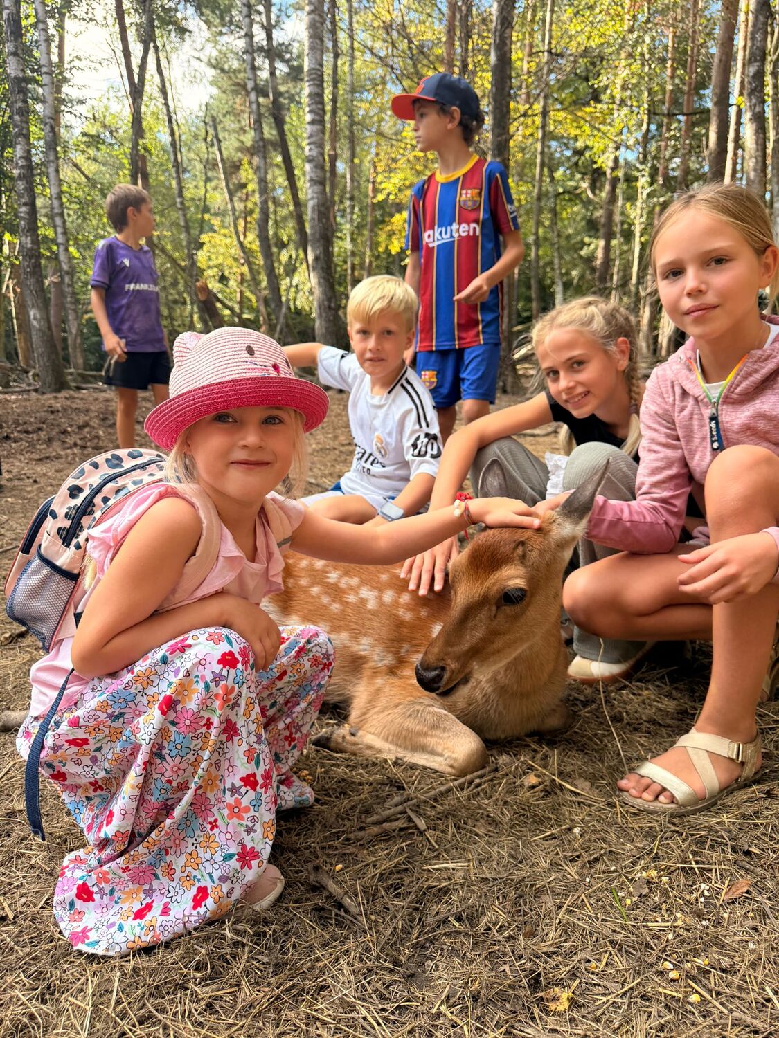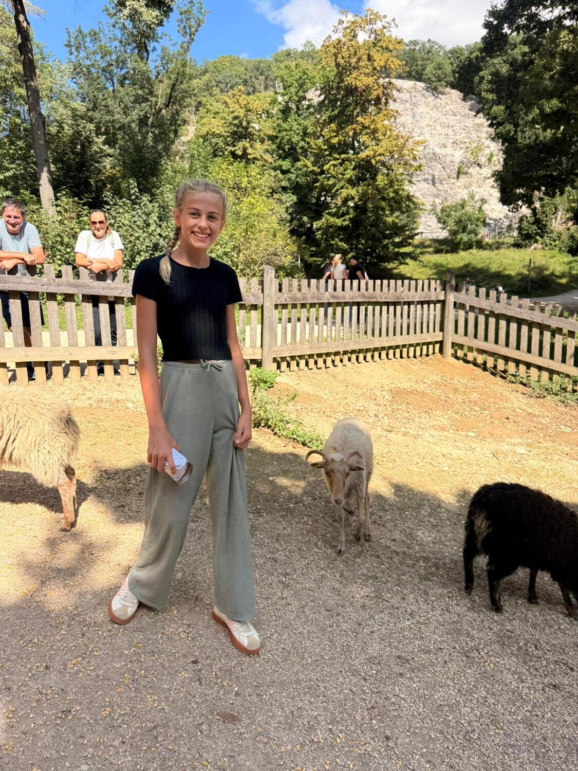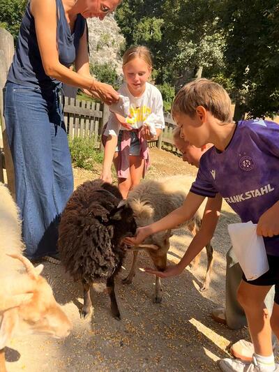 So startete eine Gruppe von 9 Kindern mit Begleitpersonen um 11.30 Uhr nach Ernstbrunn zu einem gemeinsamen Mittagessen in der Pizzeria. Nachdem alle gestärkt waren ging es in den Ernstbrunner Wildpark. Wir hatten Glück und das Wetter hielt den ganzen Nachmittag an, sodass wir durch den Park spazieren und die verschiedensten Tiere – Schafe, Wildschweine, Steinböcke, Gämsen, Wölfe, Muflons, Damwild, Hirsche – in den Gehegen und auch frei beobachten und füttern konnten. Natürlich wurde auch der Spielplatz besucht - alle hatten viel Vergnügen dabei. Zum Abschluss gab’s noch einen Ausklang im Garten bei Eis, Kuchen, Spiel und Spaß.