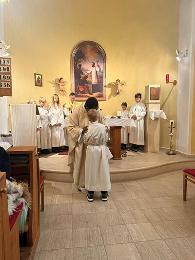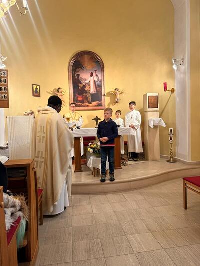 Am Christkönigssonntag wurde Loren Lotter feierlich im Rahmen der Hl.Messe von Kaplan Auguste als neuer Ministrant aufgenommen. Die anderen Ministrant*innen haben ihn herzlich willkommen geheißen und freuen sich sehr über die Verstärkung. Lorenz ist sehr motiviert und hat tatkräftig an beiden Adventsonntagen ministriert.