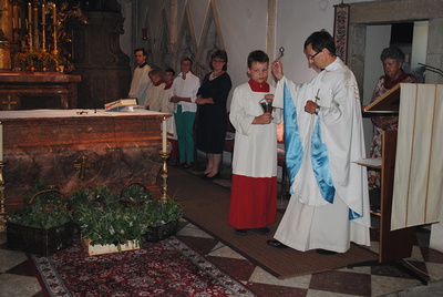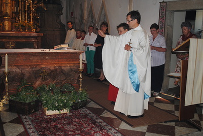 Wir hörten, worauf die Kräuter heilende Wirkung ausüben können. Pfarrer Leopold Mathias segnete die zu Sträußchen gebundenen Kräuter.