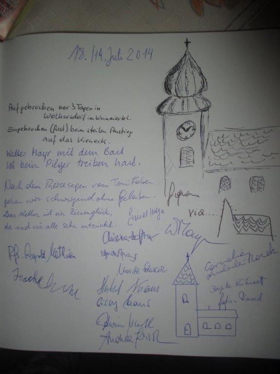 Am Mittwoch um 4 Uhr machten sich die ersten Wallfahrer von zu Hause auf den Weg nach Mariazell. Der Weg führte über Wien, wo im Stephansdom ein Andacht gefeiert wurde und neue Pilger hinzu kamen, nach Kaltenleutgeben. Über Heiligenkreuz ging es nach Furth an Triesting. Am Freitag führte der Weg über das Kieneck nach Rohr im Gebirge. Über die Kalte Kuchl und St. Aegyd am Neuwald erreichte die Gruppe das Gscheid. Von dort ging es am Sonntag nach Mariazell.