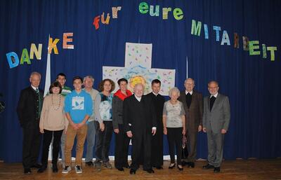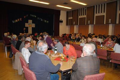 Nach dem Festgottesdienst in der Pfarrkirche wurden die Mitarbeiter im Pfarrzentrum bei der Agape herzlich willkommen geheißen.