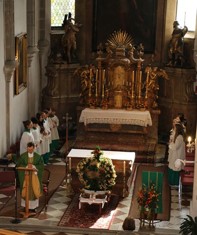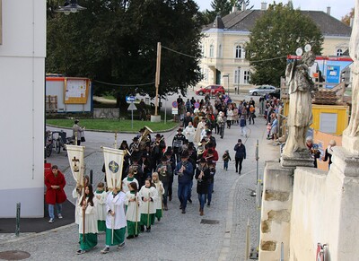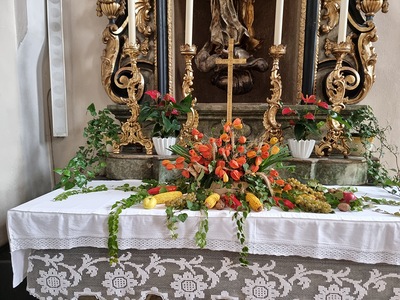 Am Sonntag, 6.10.2024 feierten wir das Erntedankfest in Wolkersdorf. Nach der Segnung der Erntekrone am Kirchenplatz folgte die Prozession über die Friedhofsgasse, Kaiser-Josef-Straße in die Pfarrkirche. Herzlichen Dank an Christl Maier und Ihr Team für das Schmücken der Erntekrone.
