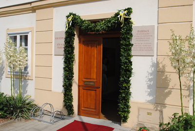 Der Primiziant wurde am Kirchenplatz von Klängen der Stadtkapelle und von Pfarrgemeinderätin Dr. Agnethe Siquans herzlich begrüßt.