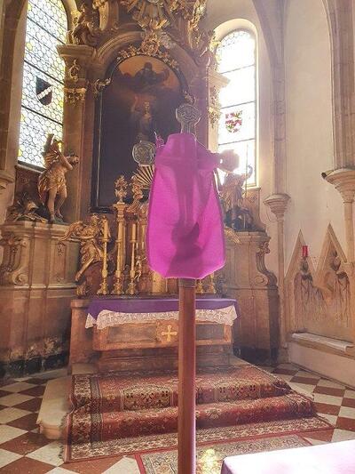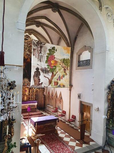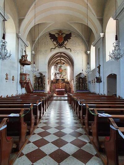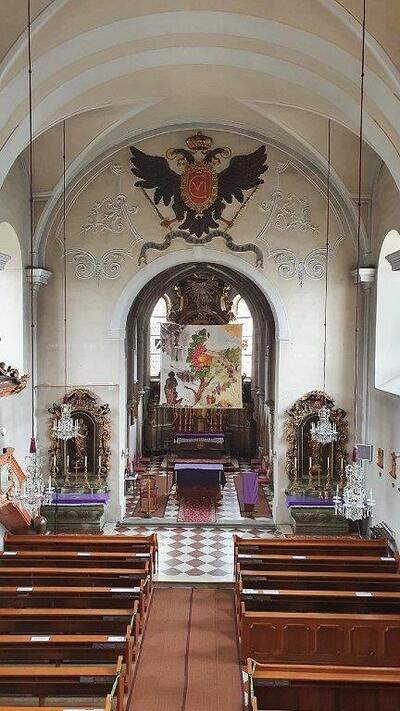 Treten Sie ein in die Pfarrkirche Wolkersdorf und erfahren Sie diesen liturgischen Raum.