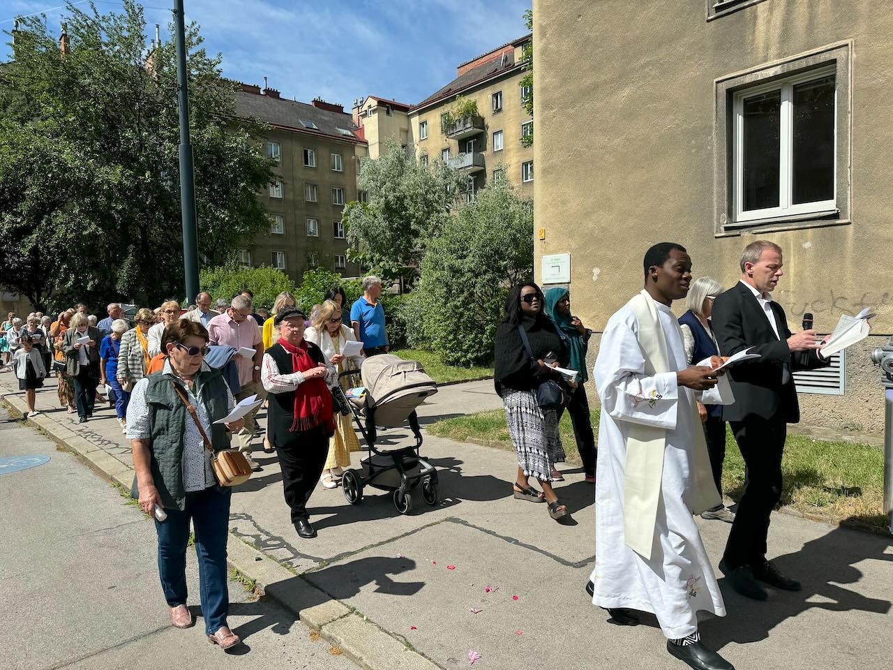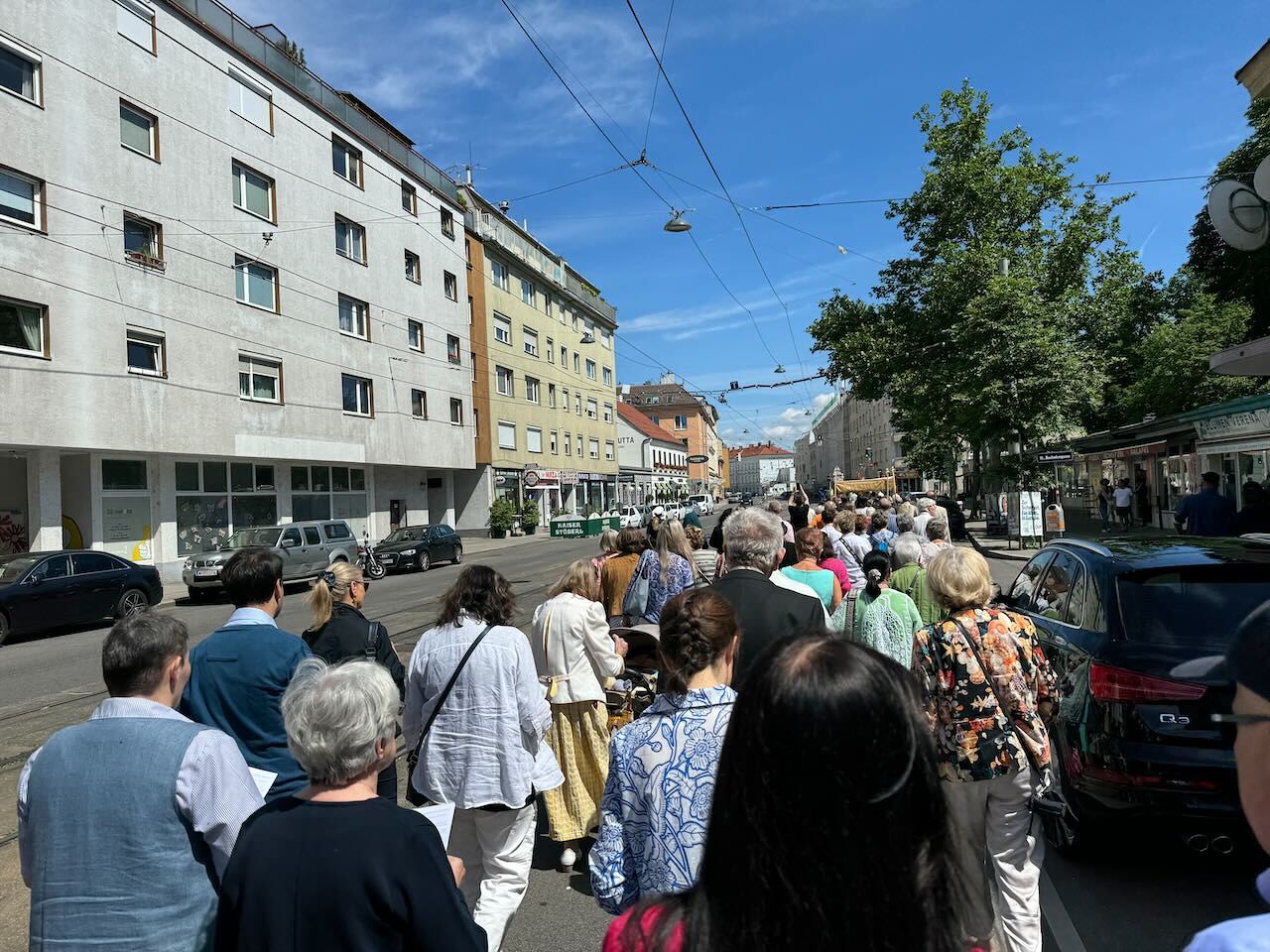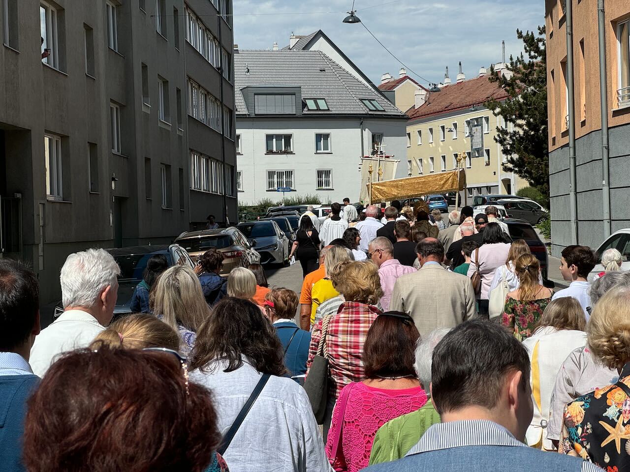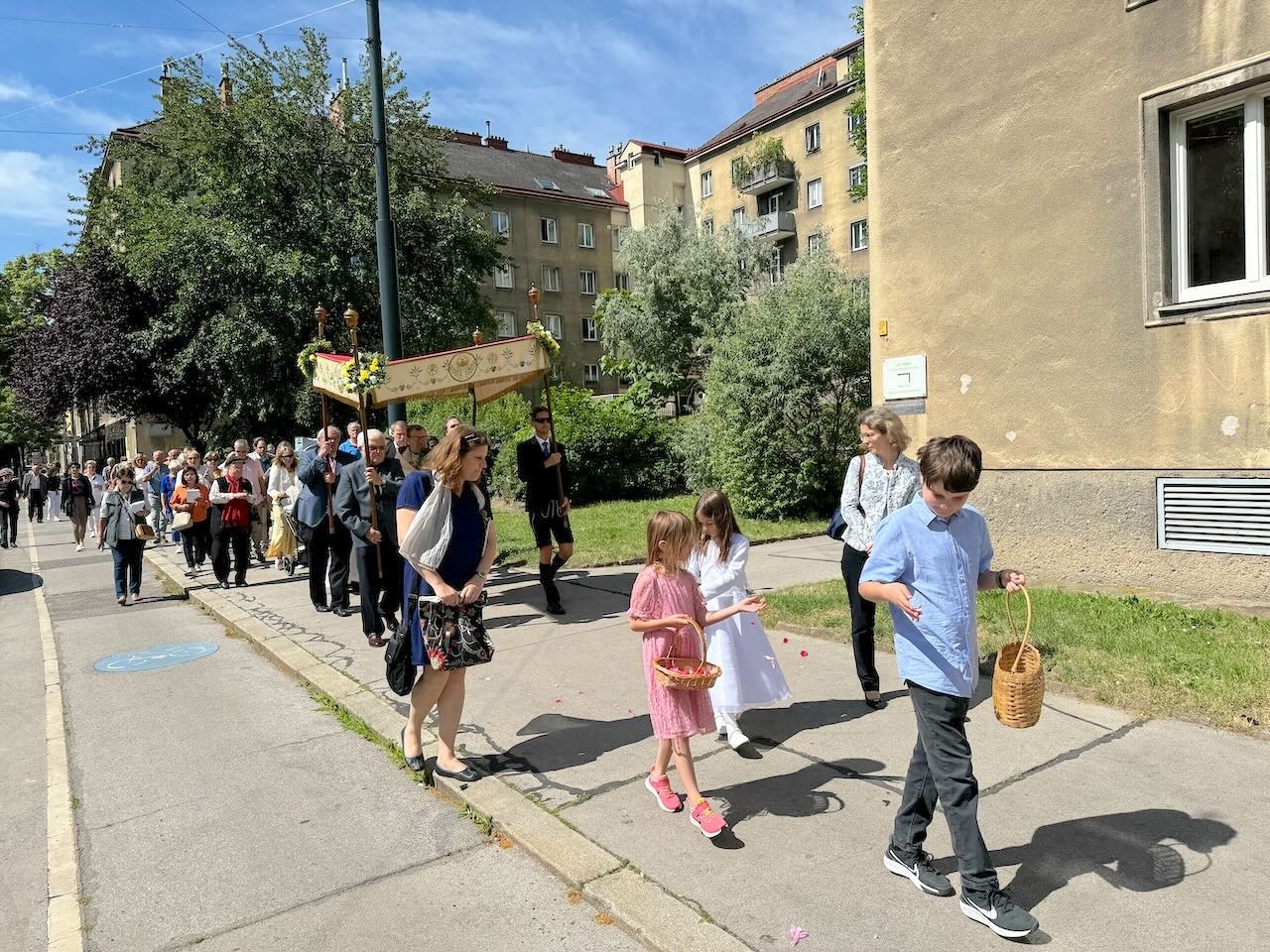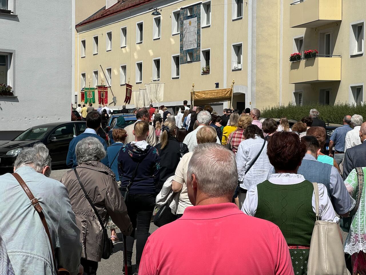 Am 30. Mai feierten wir wie jedes Jahr den Fronleichnamsgottesdienst am 12.-Februar-Platz. Gemeinsam mit Jesus, der uns in der eucharistischen Gestalt des Brotes begleitete, ging es dann in die Nußdorfer Pfarrkirche, wo der Vormittag festlich ausklang.