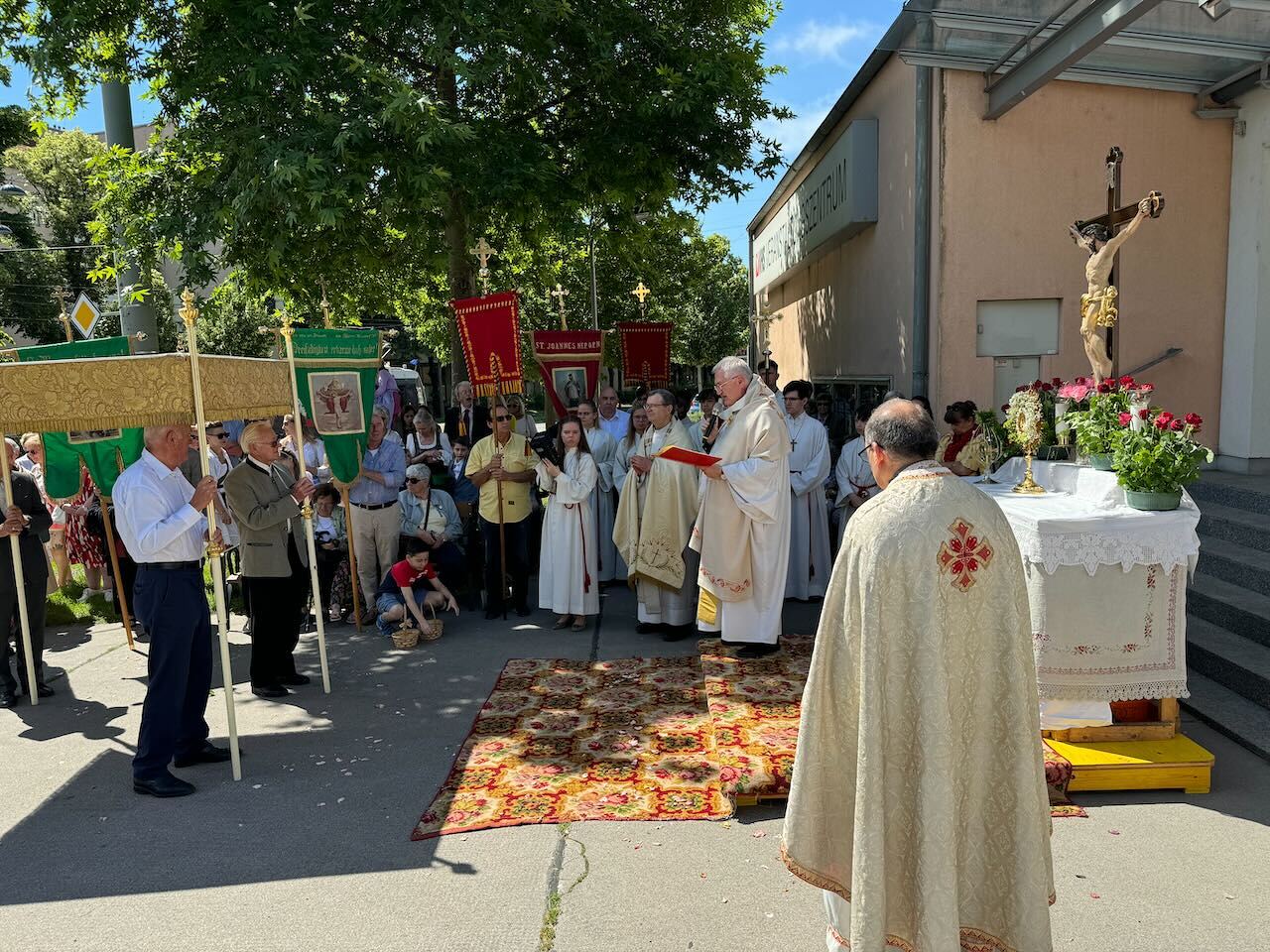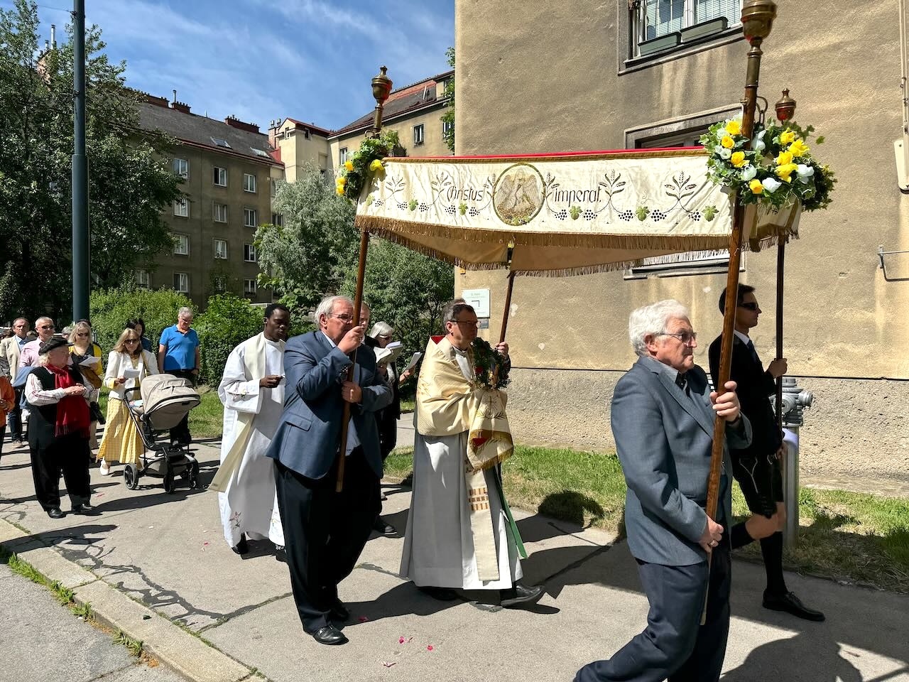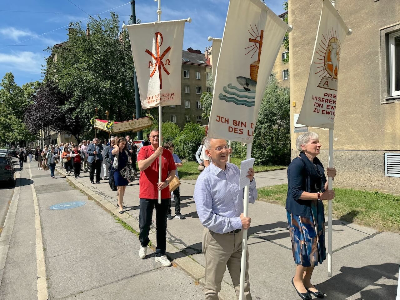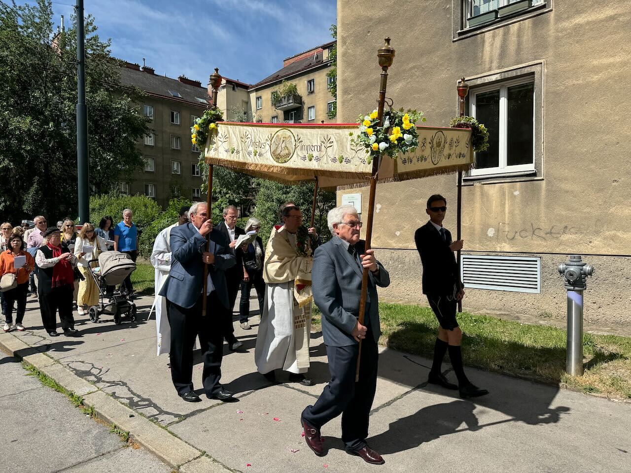 Am 30. Mai feierten wir wie jedes Jahr den Fronleichnamsgottesdienst am 12.-Februar-Platz. Gemeinsam mit Jesus, der uns in der eucharistischen Gestalt des Brotes begleitete, ging es dann in die Nußdorfer Pfarrkirche, wo der Vormittag festlich ausklang.