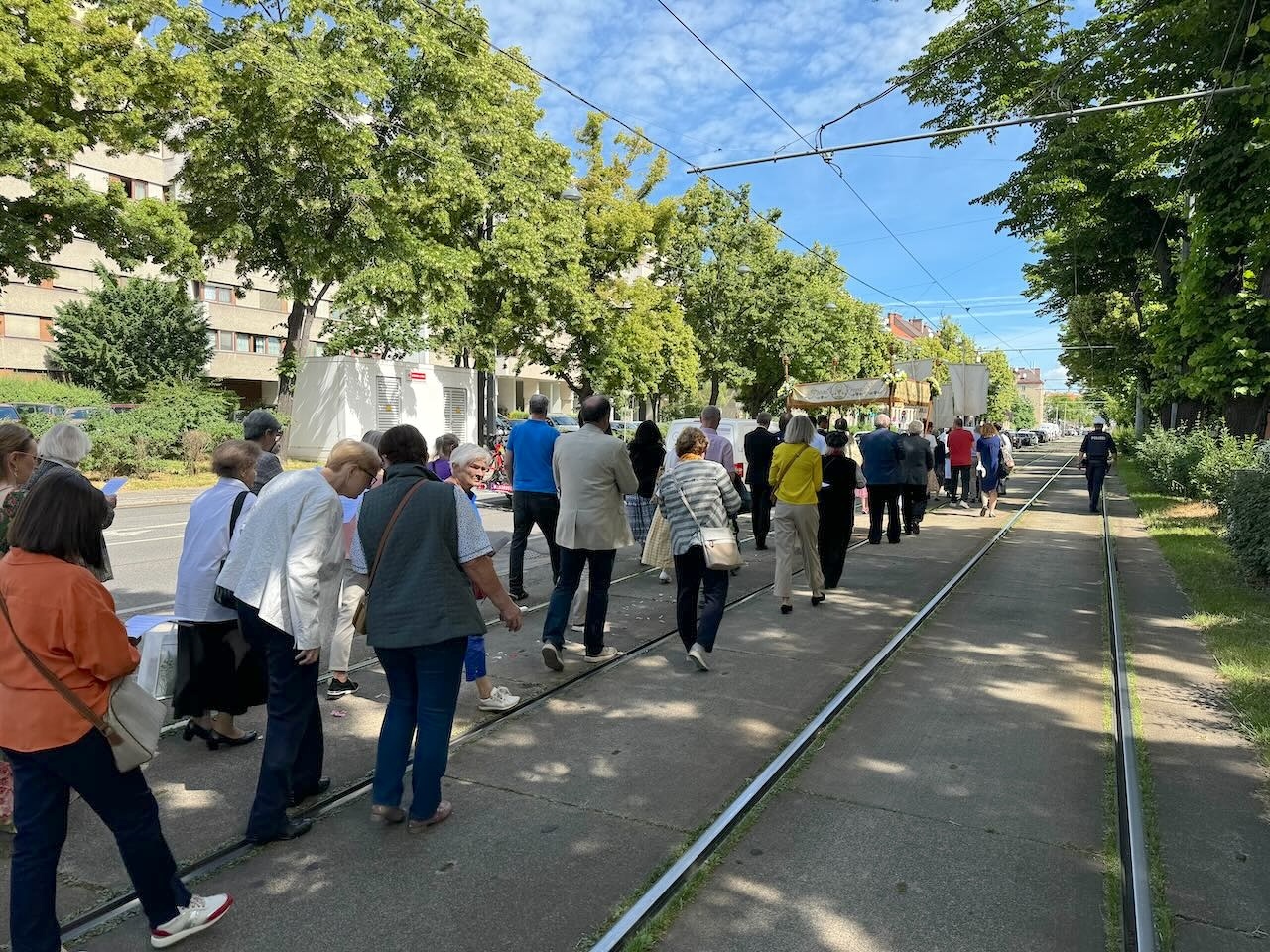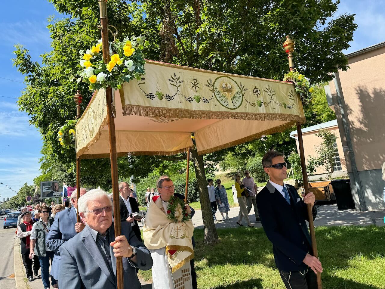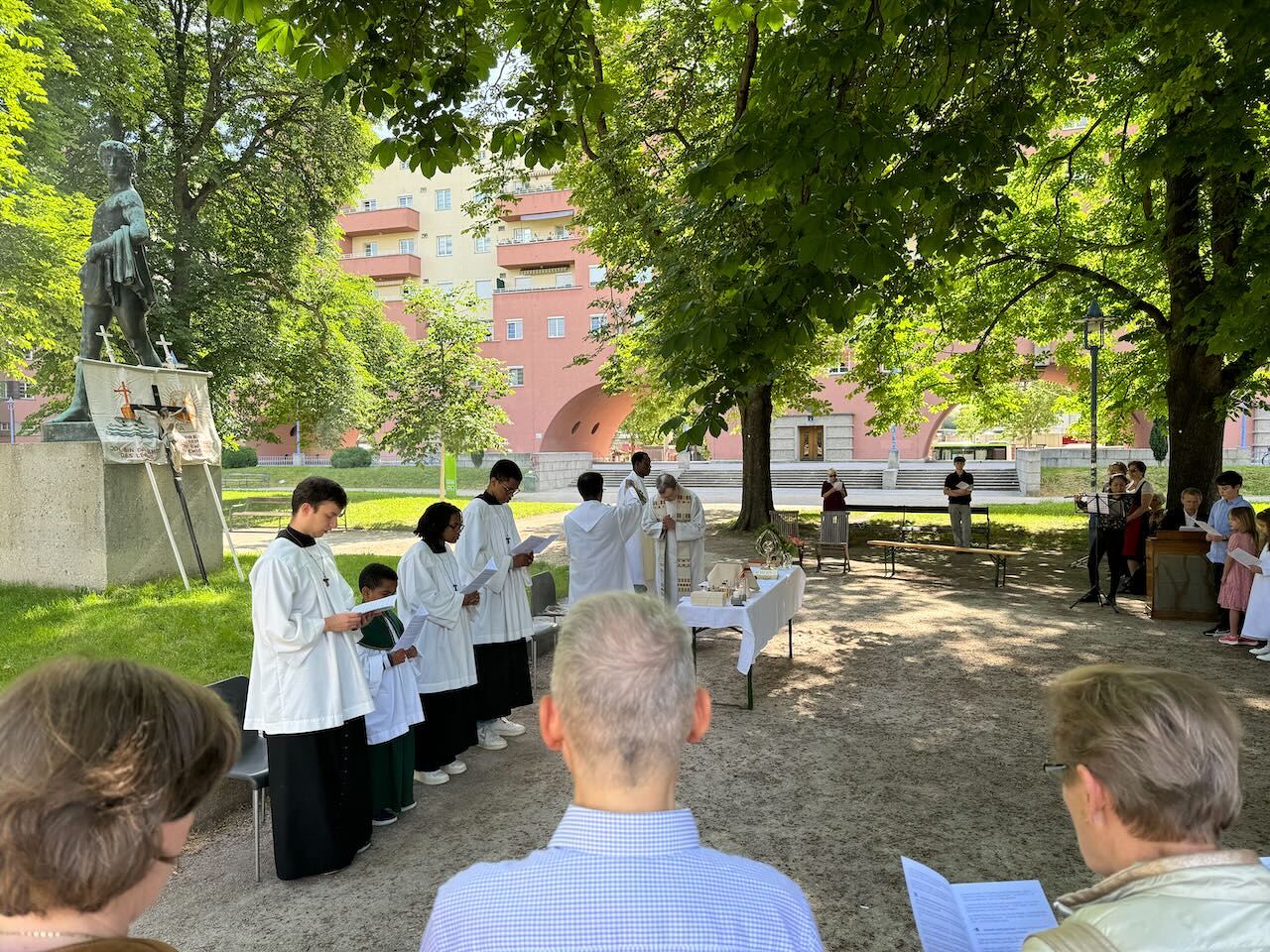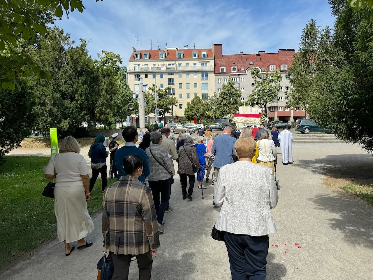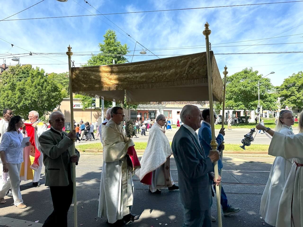 Am 30. Mai feierten wir wie jedes Jahr den Fronleichnamsgottesdienst am 12.-Februar-Platz. Gemeinsam mit Jesus, der uns in der eucharistischen Gestalt des Brotes begleitete, ging es dann in die Nußdorfer Pfarrkirche, wo der Vormittag festlich ausklang.
