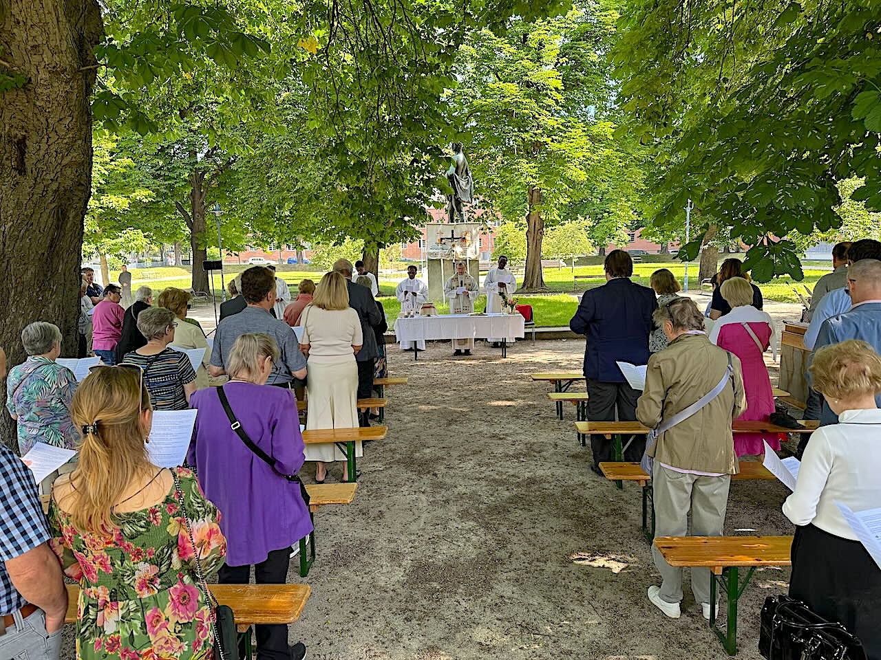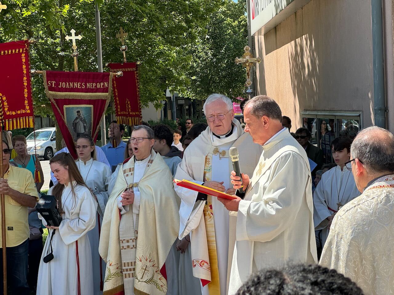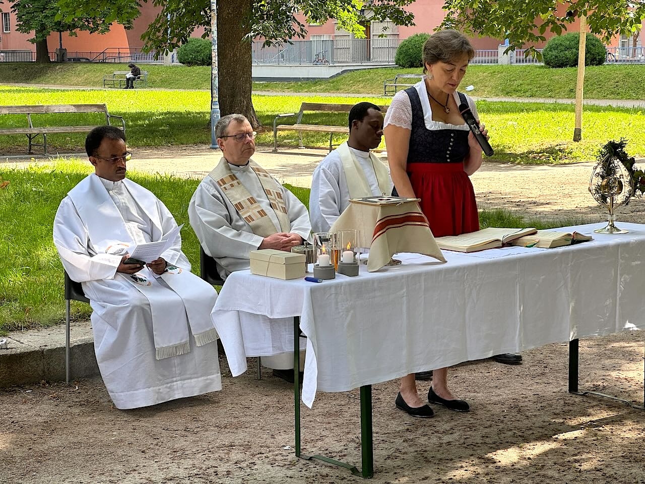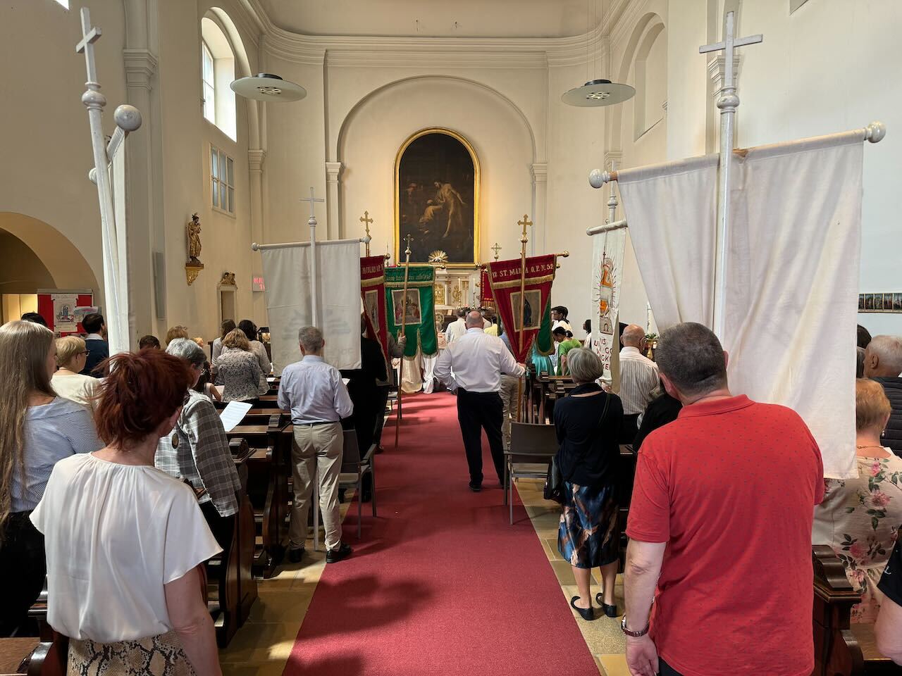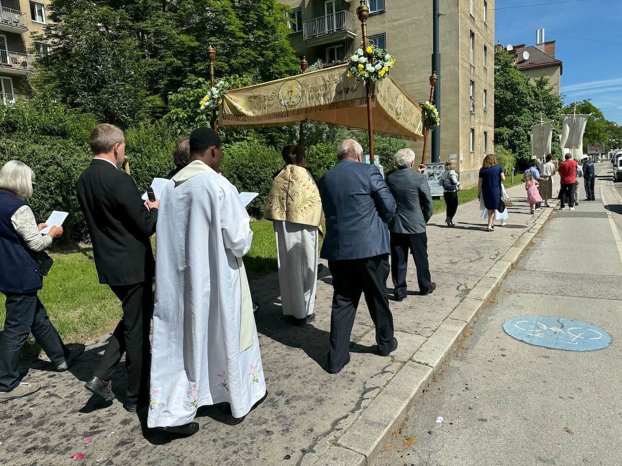 Am 30. Mai feierten wir wie jedes Jahr den Fronleichnamsgottesdienst am 12.-Februar-Platz. Gemeinsam mit Jesus, der uns in der eucharistischen Gestalt des Brotes begleitete, ging es dann in die Nußdorfer Pfarrkirche, wo der Vormittag festlich ausklang.