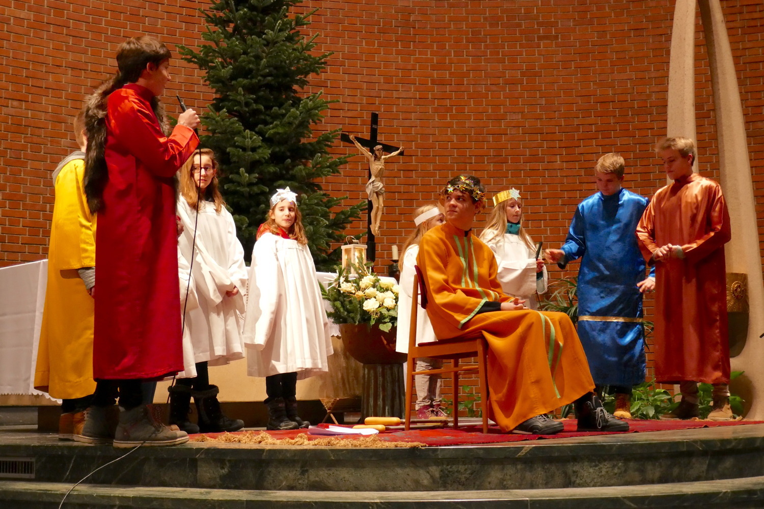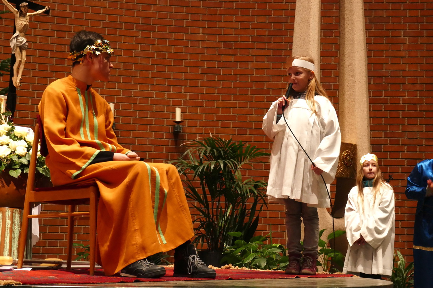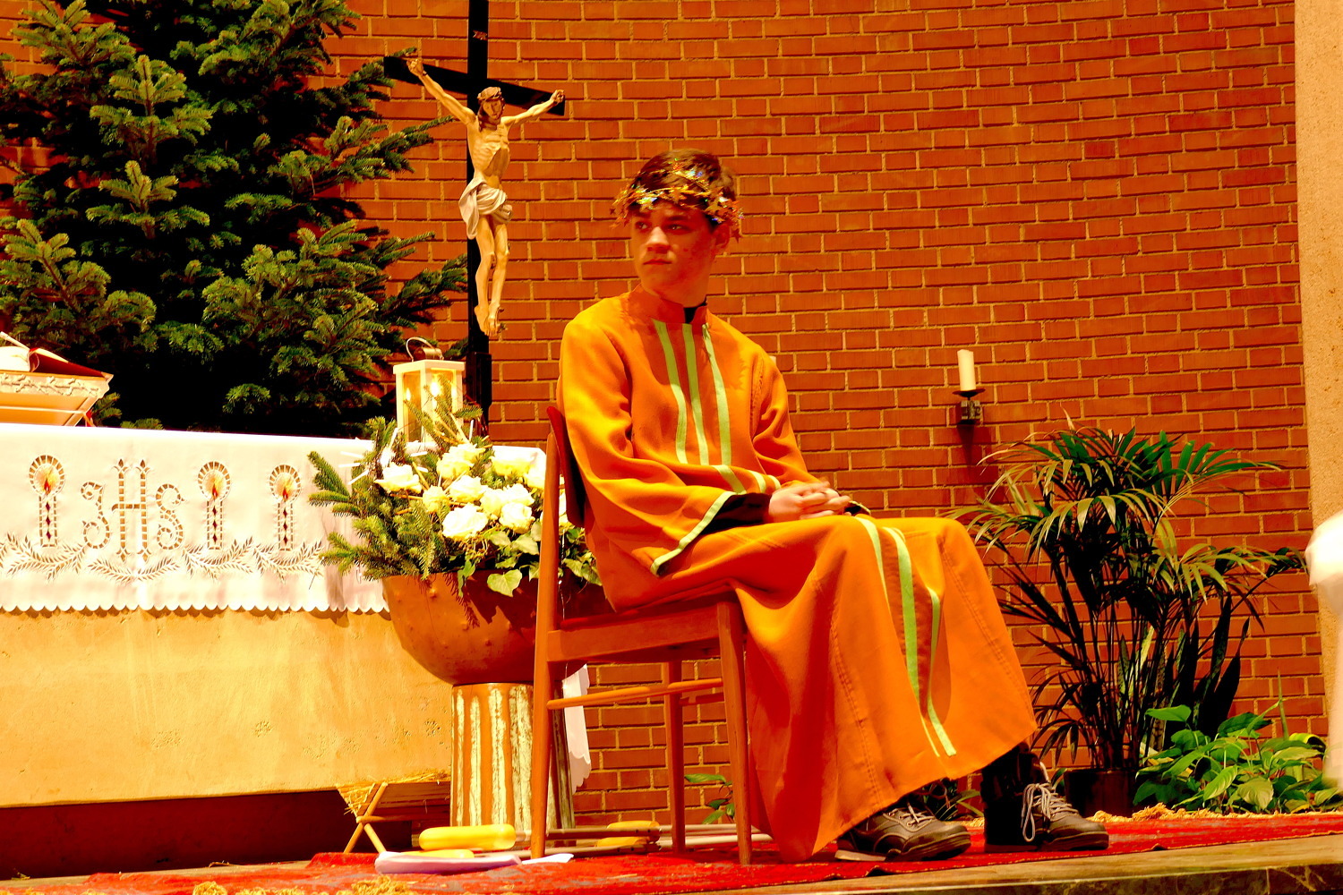Im Stück „Thronrat Gottes” ging es um die Frage, wie Gott die Menschen von ihren Irrwegen abhalten und zurück auf seine Seite ziehen kann. Sollte er eine neue Sintflut schicken oder die Menschen bestrafen? Nein – er entschied sich dafür, seinen Sohn Jesus Christus auf die Erde zu schicken und die Menschen von seiner Barmherzigkeit und Güte zu überzeugen.