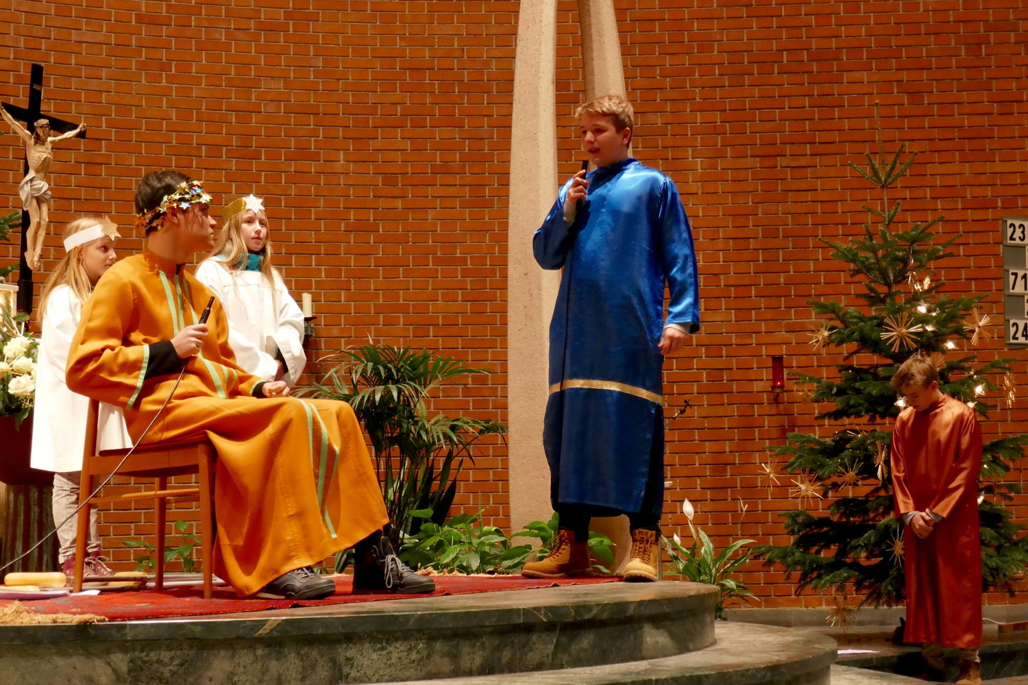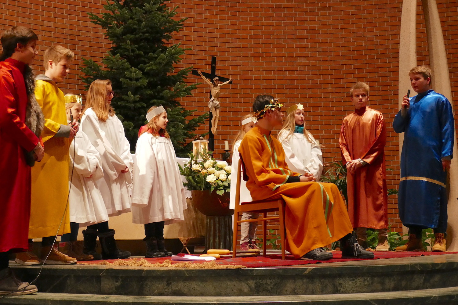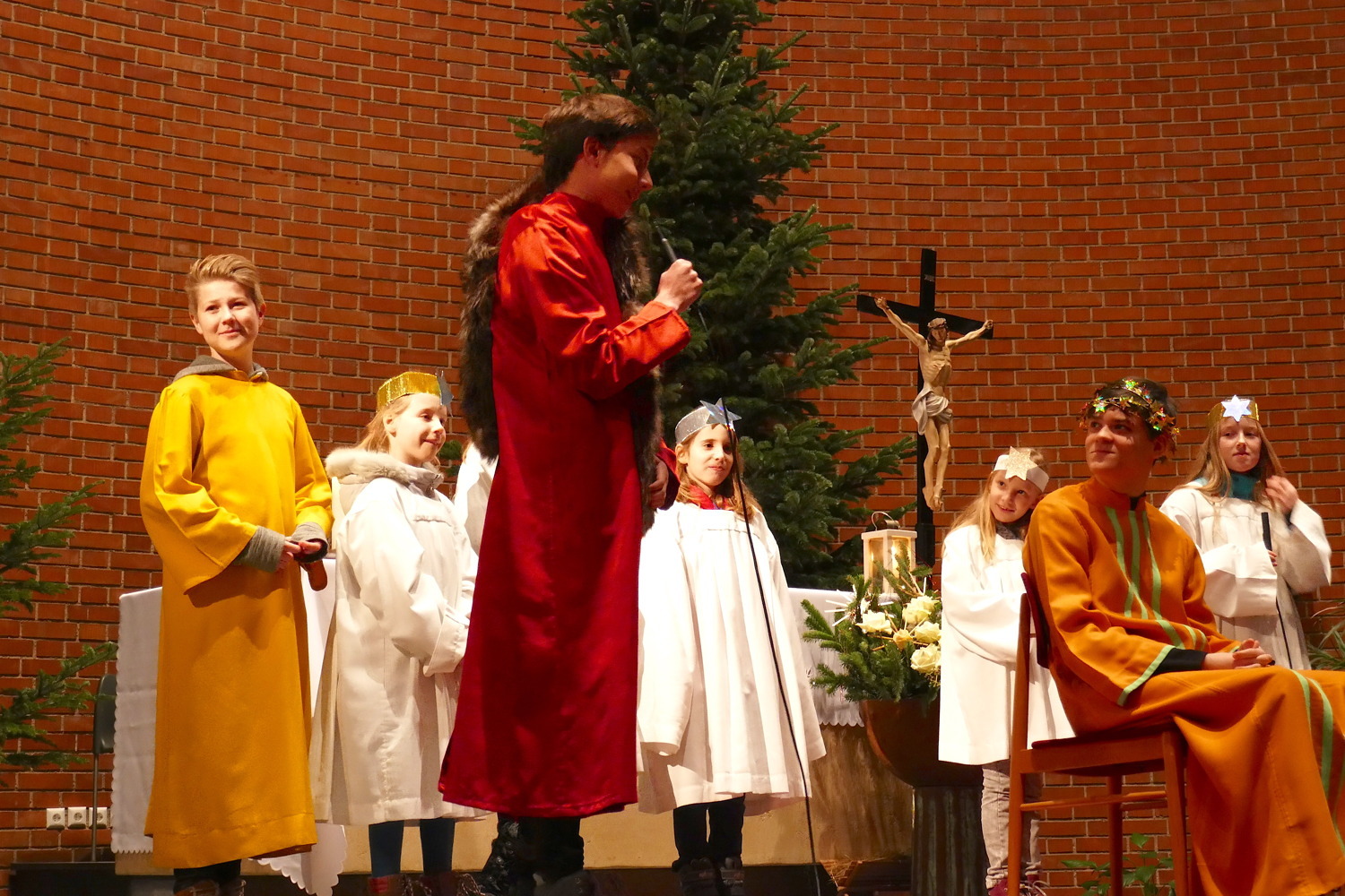 Im Stück „Thronrat Gottes” ging es um die Frage, wie Gott die Menschen von ihren Irrwegen abhalten und zurück auf seine Seite ziehen kann. Sollte er eine neue Sintflut schicken oder die Menschen bestrafen? Nein – er entschied sich dafür, seinen Sohn Jesus Christus auf die Erde zu schicken und die Menschen von seiner Barmherzigkeit und Güte zu überzeugen.