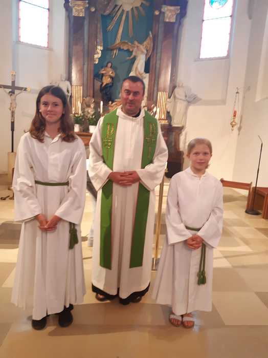 Heute gab es in der Pfarre Wenzersdorf zwei Premieren: Pater Silvestru feierte zum ersten Mal Heilige Messe in der Pfarre. Susanna Holzinger ministrierte zum ersten Mal. Sie hat sich bereit erklärt, unsere Priester künftig zu unterstützen. Wir wünschen beiden viel Freude und Gottes Segen bei ihrer neuen Aufgabe.