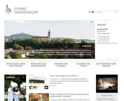 Alles im Leben unterliegt jedoch einer Veränderung und so nutze die Pfarre Gnadendorf auch vor 10 Jahren wieder als erste Pfarre das Angebot am neuen Webportal der Erzdiözese Wien mit einer eigenen Micropage vertreten zu sein. „Das neue Design, die neuen Funktionalitäten und die Einbindung von zahlreichen Widgets machten die neue Premium Micropage sehr attraktiv für unsere Pfarre", berichtet Markus Göstl, der auch als Testuser bei der Implementierung des neuen Systems beteiligt war.