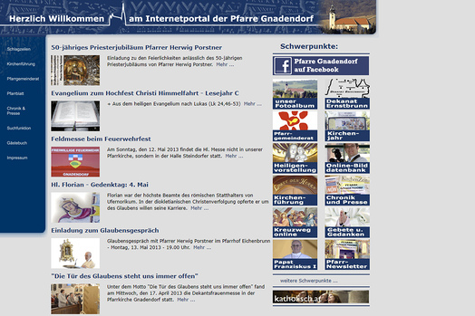 „Am 15. Juli 2003 ging die Website online, mit der wir wesentlich aktueller und schneller Informationen für die Pfarrbevölkerung bereitstellen konnten, als dies per Pfarrbrief möglich ist", erinnert sich Markus Göstl, Webmaster und Stv. Vorsitzender des Pfarrgemeinderates von Gnadendorf an den damaligen Start.