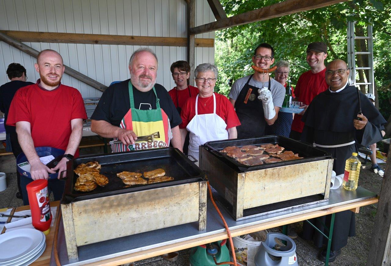 Auch heuer wieder kamen zahlreiche Gäste aus der Pfarre und dem gesamten Pfarrverband nach Asparn/Zaya und genossen einen gemütlichen Pfingstsonntag im Garten des Minoritenklosters. Bedient wurden die Gäste von zahlreichen freiwilligen Helferinnen und Helfern sowie von Pater Liviu und Pater Ionut, die an diesem Tag ihren schwarzen Habit gegen das Kellneroutfit tauschten.