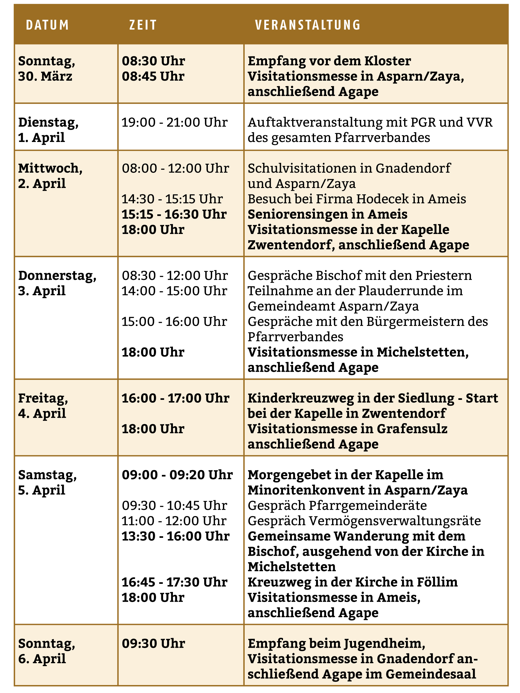 Seit Oktober 2024 findet die bischöfliche Visitation im Dekanat Laa-Gaubitsch statt. Für unseren Pfarrverband steht der Besuch von Weihbischof Stephan Turnovszky nun kurz bevor.
