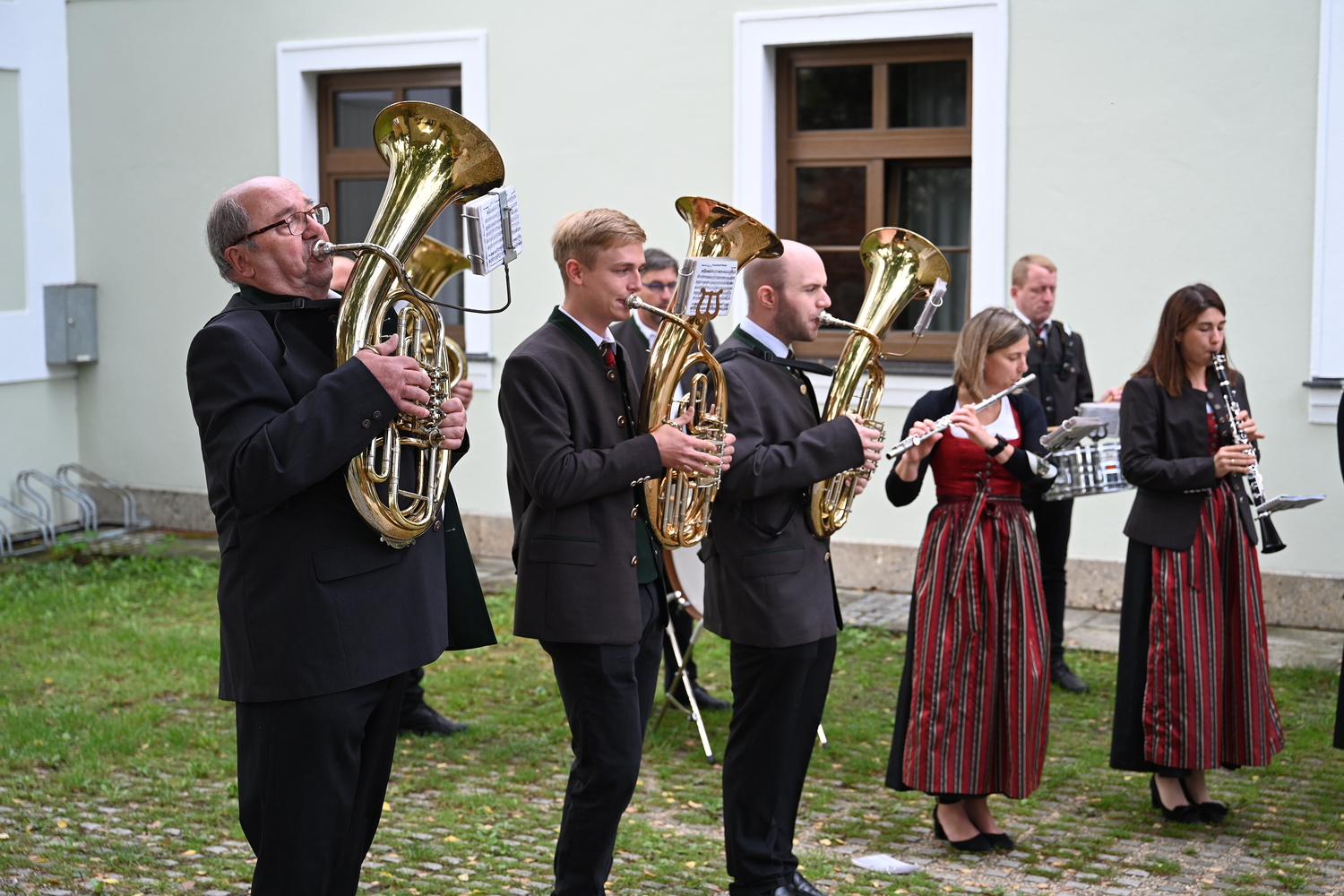 Im Mittelpunkt stand die Segnung der prachtvoll geflochtenen Erntekrone und Erntedanksträußchen, die von den fleißigen Händen der Pfarrmitglieder vorbereitet worden war. Gleichzeitig wurde die Feier auch zu einem besonderen Moment für die Freiwillige Feuerwehr: Ihre neuen Einsatzjacken sowie die Florianis selbst wurden im Rahmen der Messe gesegnet – ein starkes Zeichen für Schutz und Gemeinschaft.