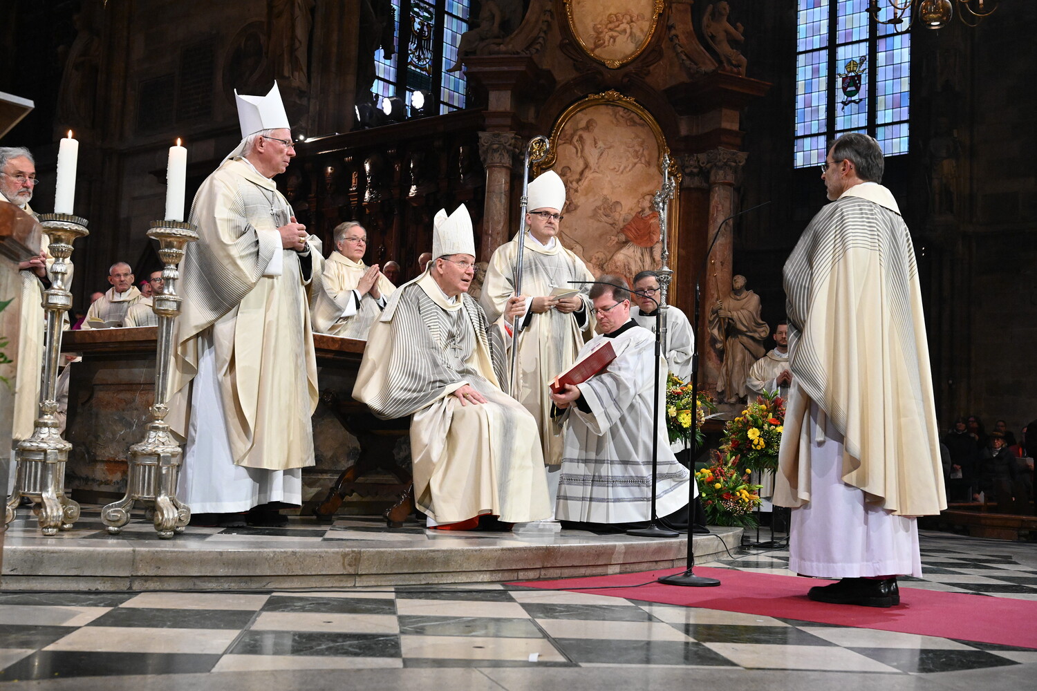 Josef Grünwidl ist neuer Erzbischof von Wien. Im Rahmen eines Festgottesdienstes im Stephansdom legte Kardinal Christoph Schönborn seinem Nachfolger an der Spitze der Erzdiözese Wien die Hände auf und weihte ihn zum Bischof. Nachdem dies auch alle anderen anwesenden 28 katholischen Bischöfe getan hatten, erhielt Grünwidl seine bischöflichen Insignien (Mitra, Ring und Bischofsstab) und wurde zu seinem Bischofssitz (Kathedra) geführt, wo er Platz nahm und damit für alle sichtbar die Leitung der Erzdiözese übernahm. Das war um 15.38 Uhr. Die Mitfeiernden quittierten es mit minutenlangem Applaus.