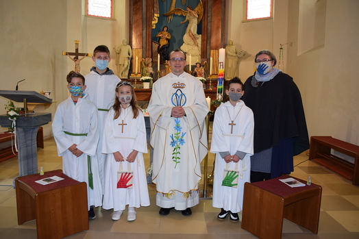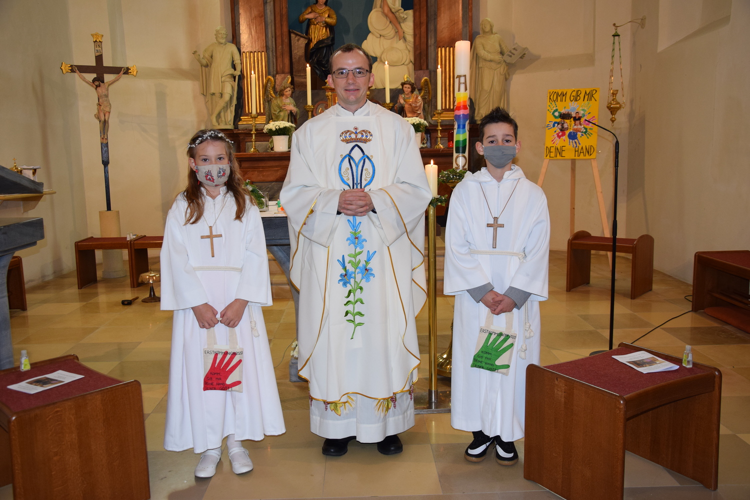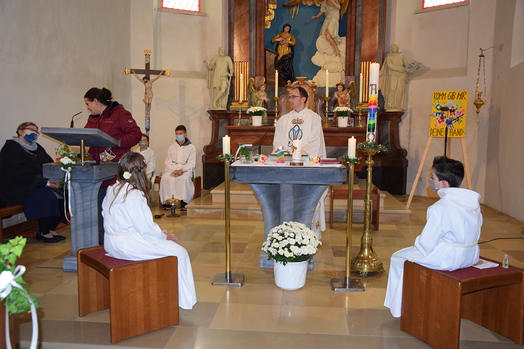 Am Sonntag, 25. Okt. 2020, empfingen Ben Buchhammer und Sophia Holzinger-Diem das Sakrament der Erstkommunion. Im Kreise Ihrer Familie und Verwandten wurde von Pater Ioan eine wunderschöne Festmesse zelebriert, die von den beiden Erstkommunionkindern, deren Paten, Geschwistern und Eltern mitgestaltet und gesanglich von einer kleinen Gruppe des Generationenchors unterstützt wurde.