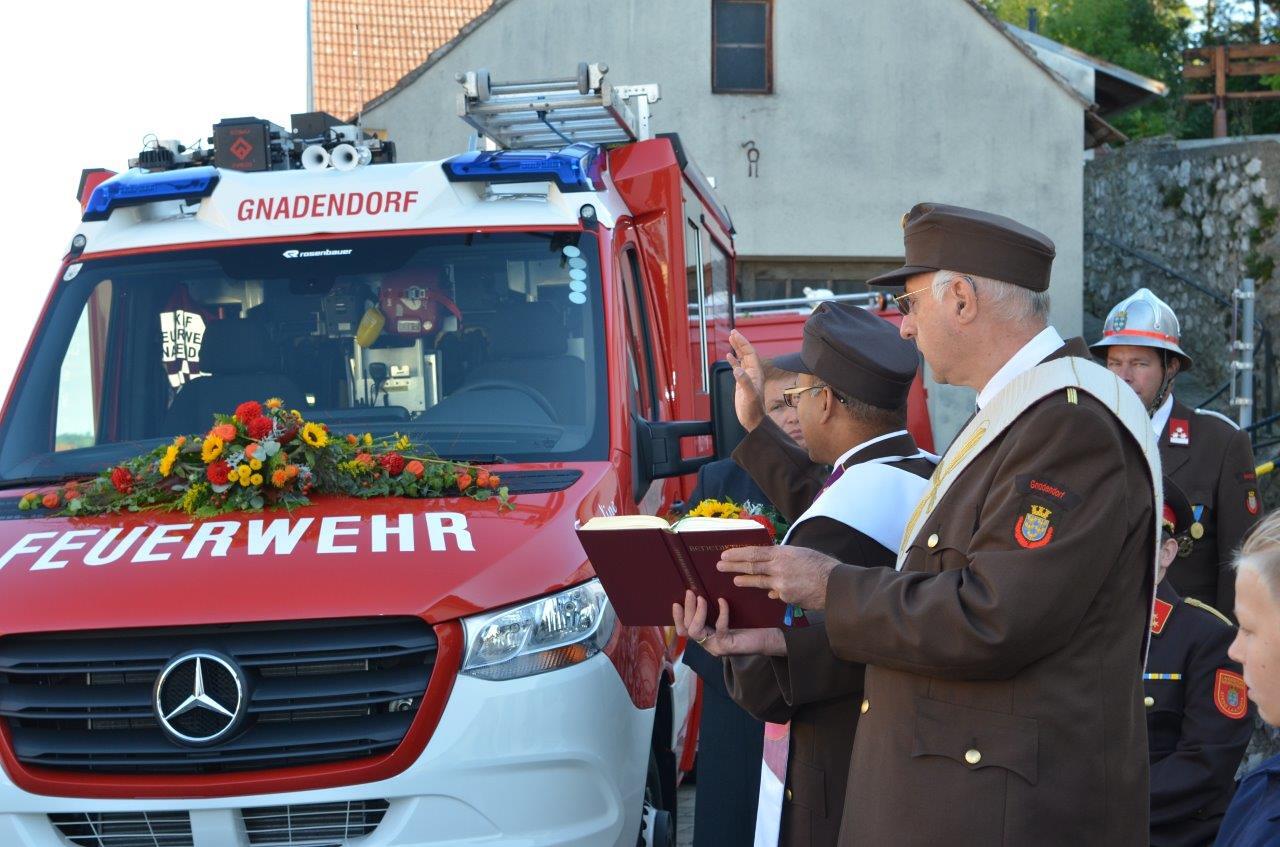 Am Samstag, den 16. Oktober 2021 fand anlässlich der Fahrzeugsegnung ein Festgottesdienst in der Pfarrkirche Gnadendorf statt. Nach den Festansprachen durch Feuerwehrkommandant Andreas Hauser, Bezirkskommandant Stv. Franz Buchmann und Bürgermeister LAbg. Manfred Schulz segnete Pfarrer Nicholas Thenammakkal und Diakon Gerhard Romstorfer das neue Hilfeleistungsfahrzeug HLF1-W der Freiwilligen Feuerwehr Gnadendorf. Als Patinnen fungierten Frau Christine Schmidt und Frau Ernestine Hauser. Im Anschluss an den Festakt lud die Feuerwehr zum Tag der offenen Tür ins Feuerwehrhaus.