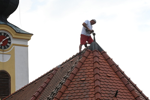 Kapelle erhielt Kreuz zurück Am 15. Juli 2024 montierte die Firma Riepl das Kreuz am Dach der Kapelle in Schletz wieder.