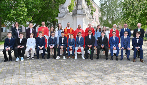 Pfarrverbandsfirmung Am 1. Mai 2024 spendete Pastoralamtsleiter Dr. Markus Beranek 17 Jugendlichen das Sakrament der Firmung. mehr: Pfarrverbandsfirmung