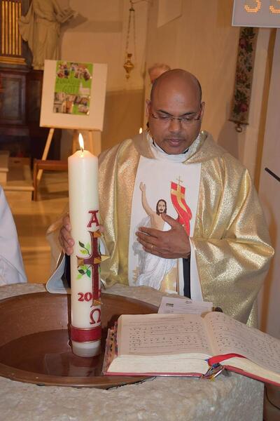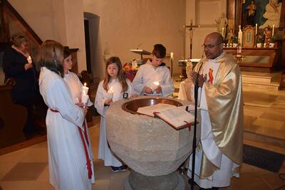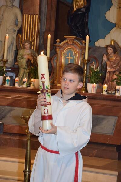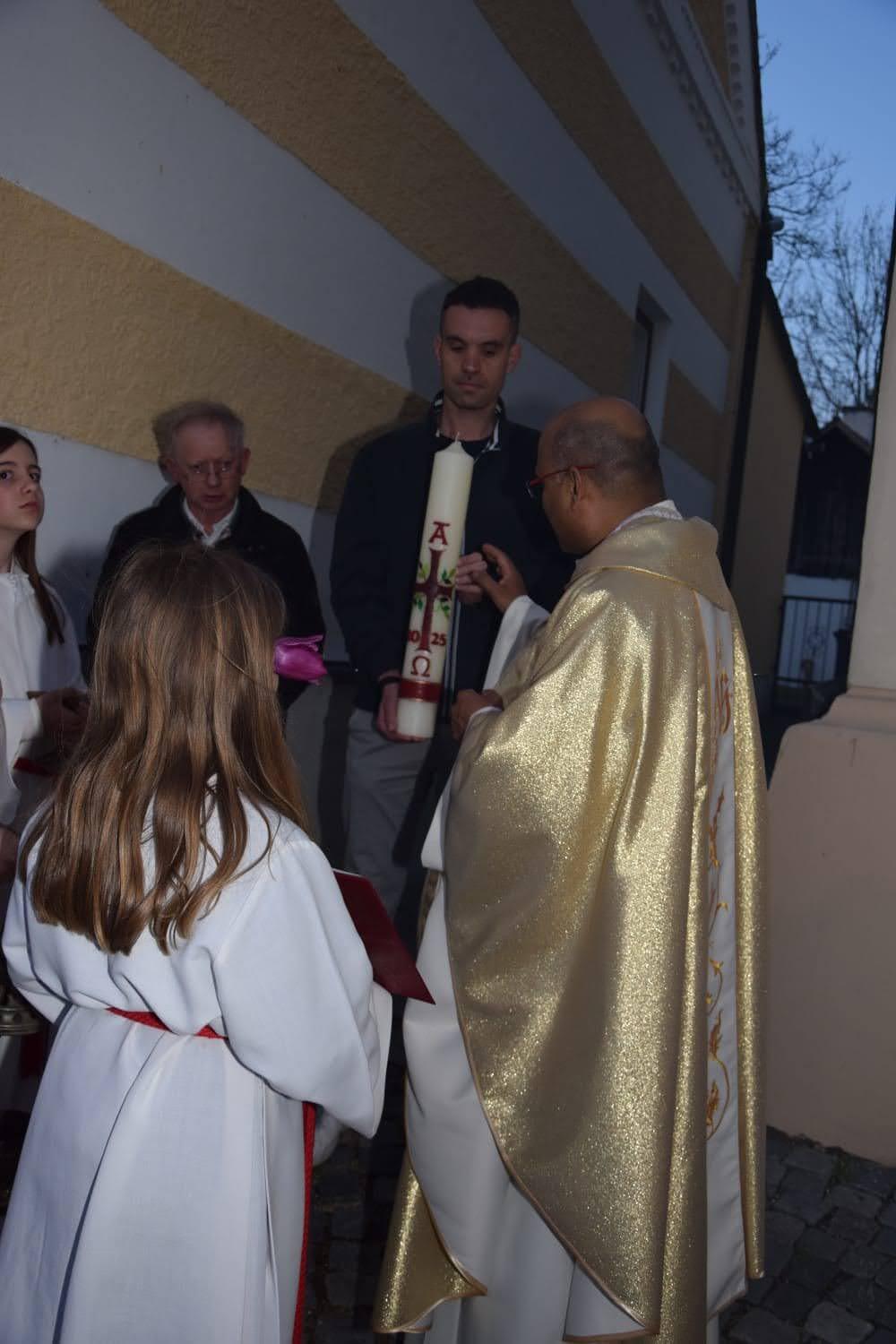 Bilder der Osternachtsfeier 2025 in der Pfarre Wenzersdorf.