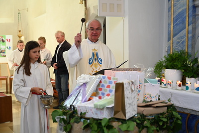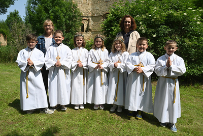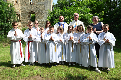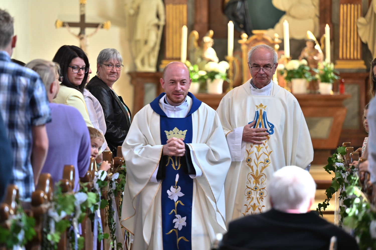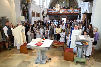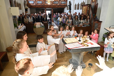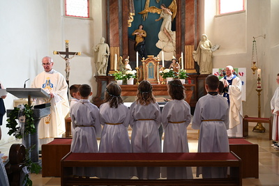 Pater Liviu und Rudolf Prokschi standen dem Gottesdienst als Priester vor. Beate Bauer kümmerte sich um die Erstkommunionstunden und Gestaltung des Festes und der Generationenchor umrahmte das Fest musikalisch.