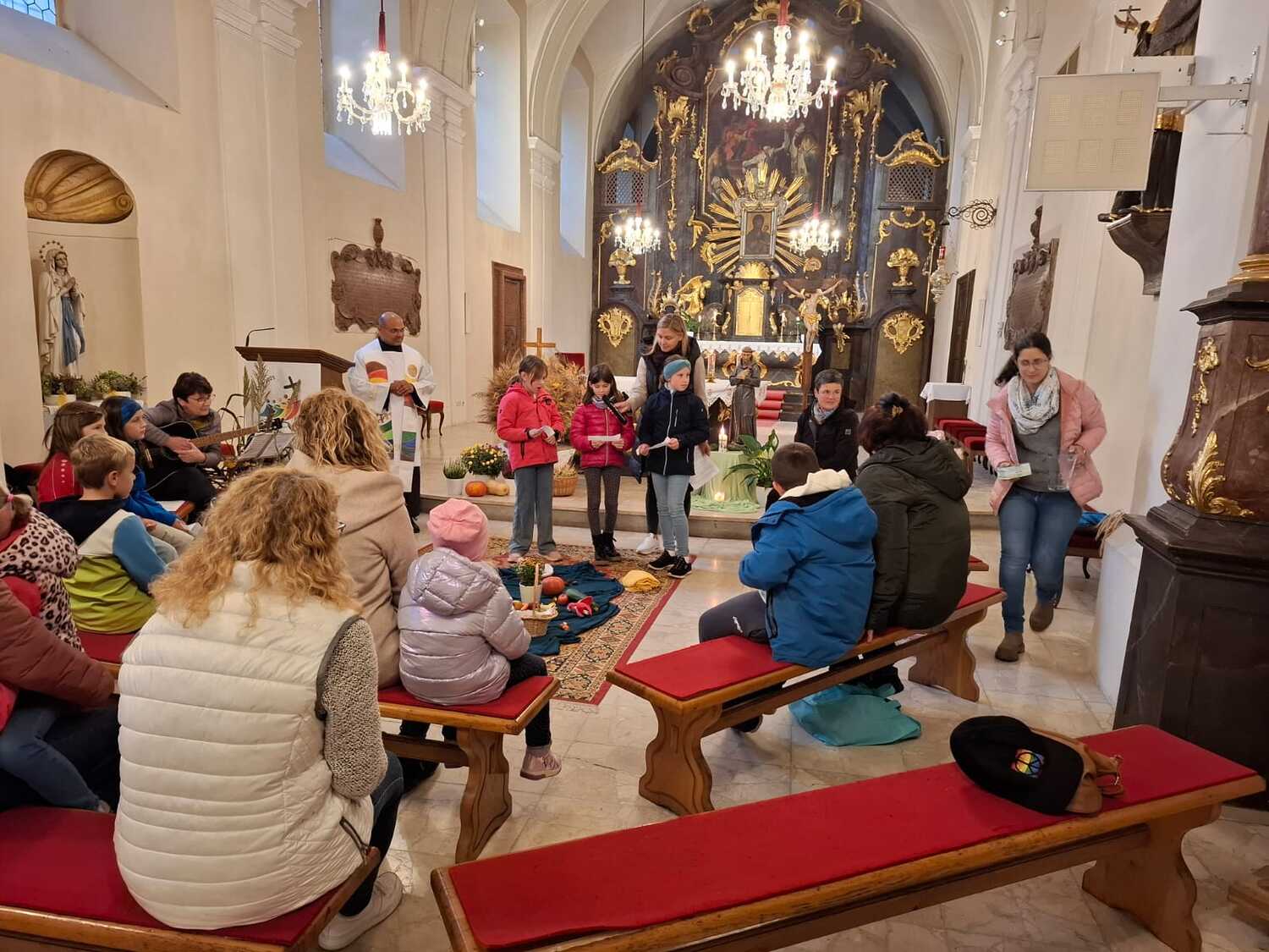 Bilder von der Familienwortgottesfeier unter dem Motto "Wir sagen Danke" in der Kirche in Asparn/Zaya.