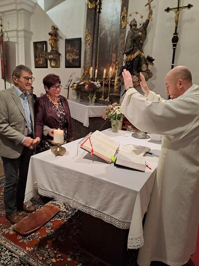 Pater Liviu feierte in Föllim die Vorabendmesse und segnete Rosi und Sepp Andrä anlässlich ihrer Goldenen Hochzeit.