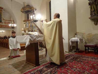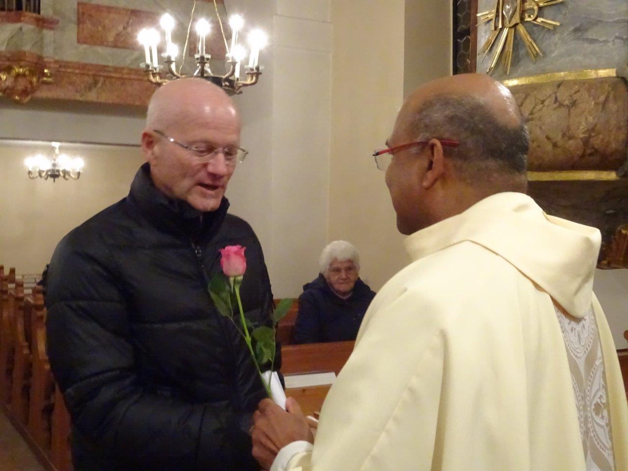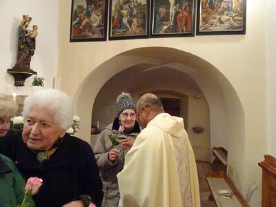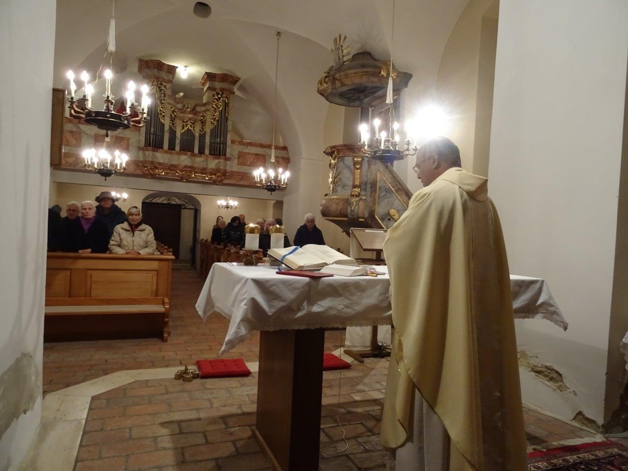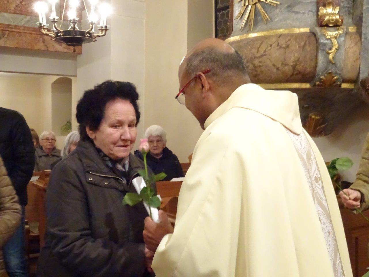 Pater Nicholas feierte die Dankmesse für die Jubilare in der Kirche in Ameis und gratulierte den anwesenden Personen recht herzlich.