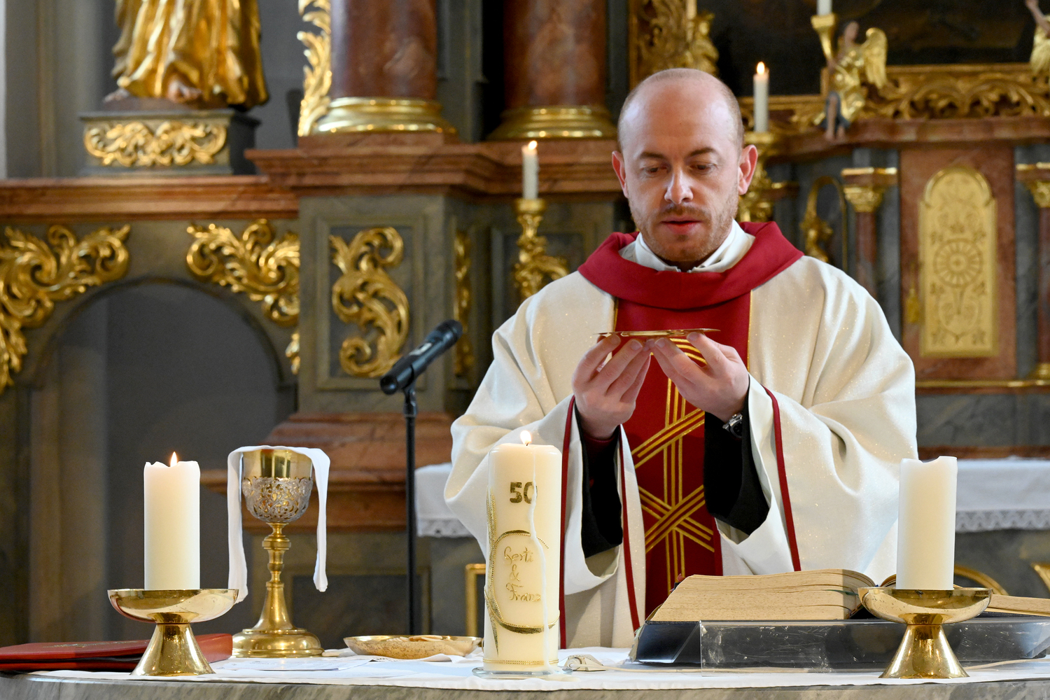 Dankmesse anlässlich der Goldenen Hochzeit von Gertrude und Franz Plöckl in der Kirche in Gnadendorf.