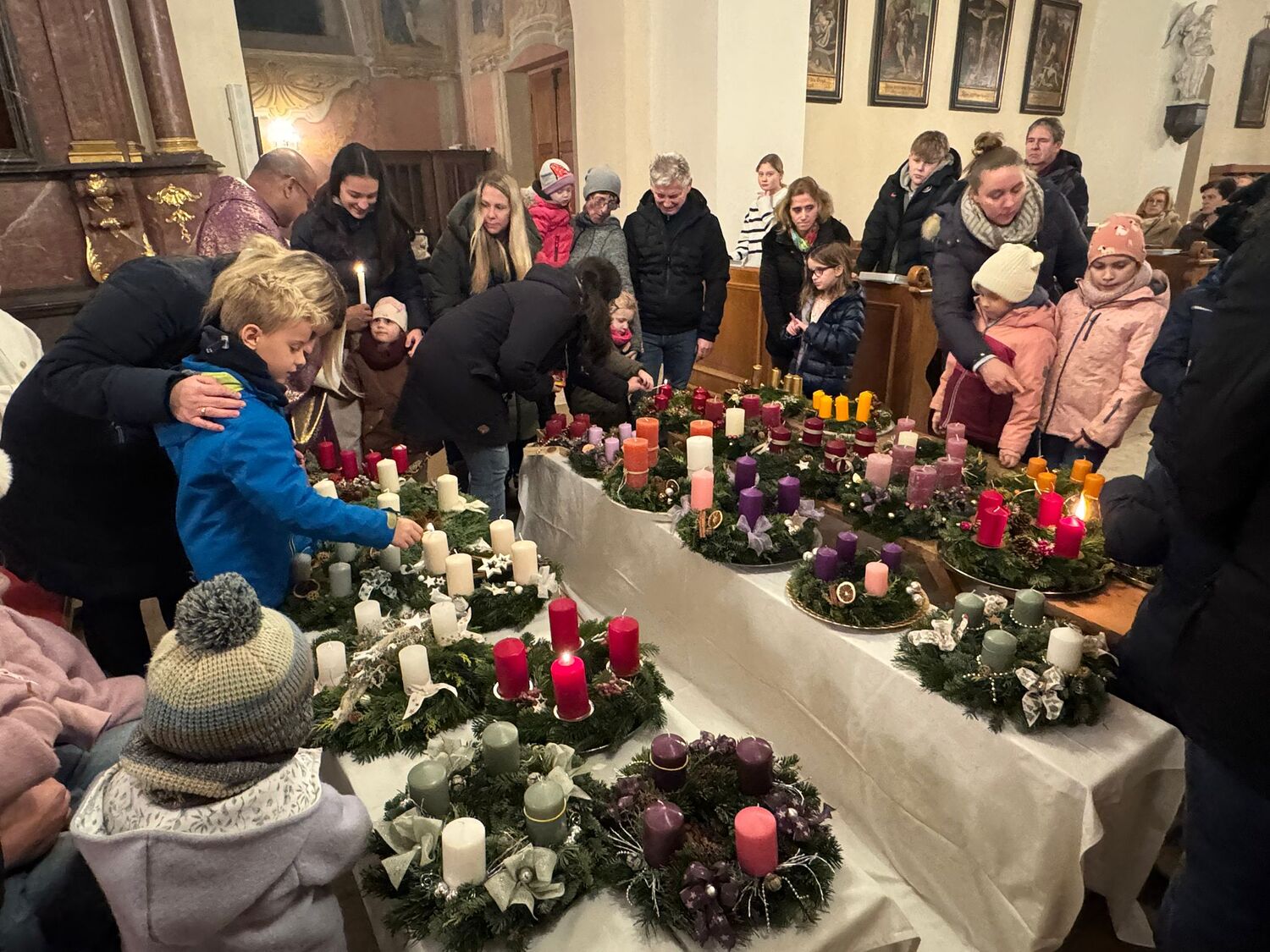 Pater Nicholas feierte die Familienmesse mit Segnung der Adventkränze in der Kirche in Asparn/Zaya am Samstag, den 29. November 2025.