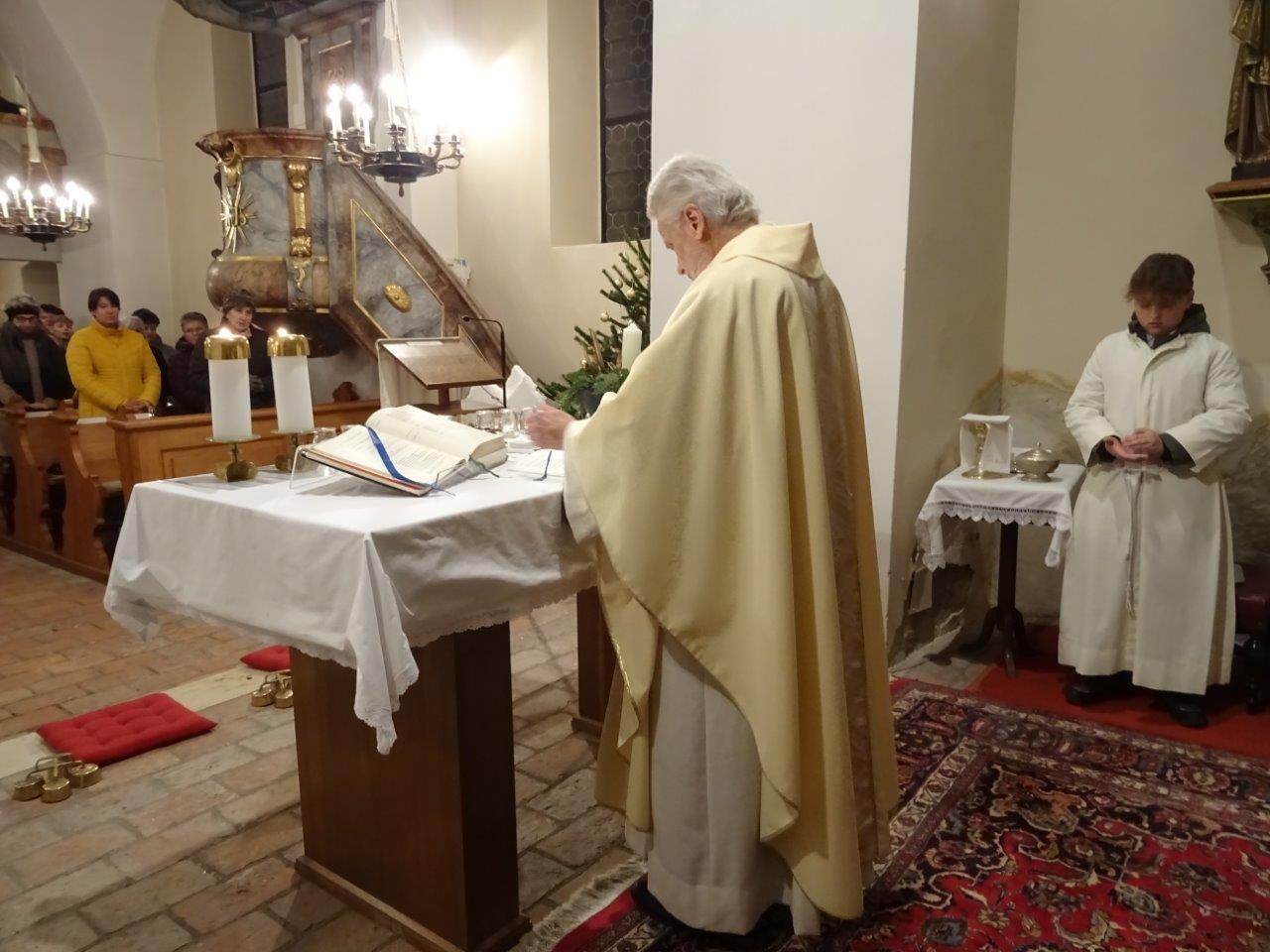 Pater Norbert feierte in der Kirche in Ameis die diesjährige Christmette mit der Pfarrgemeinde.