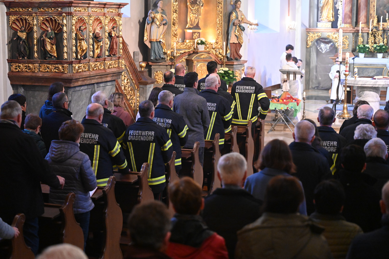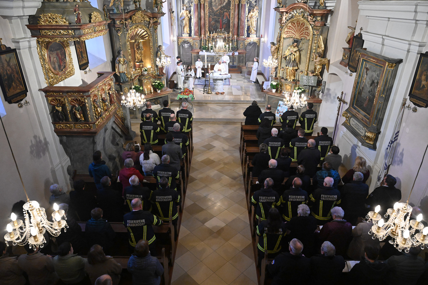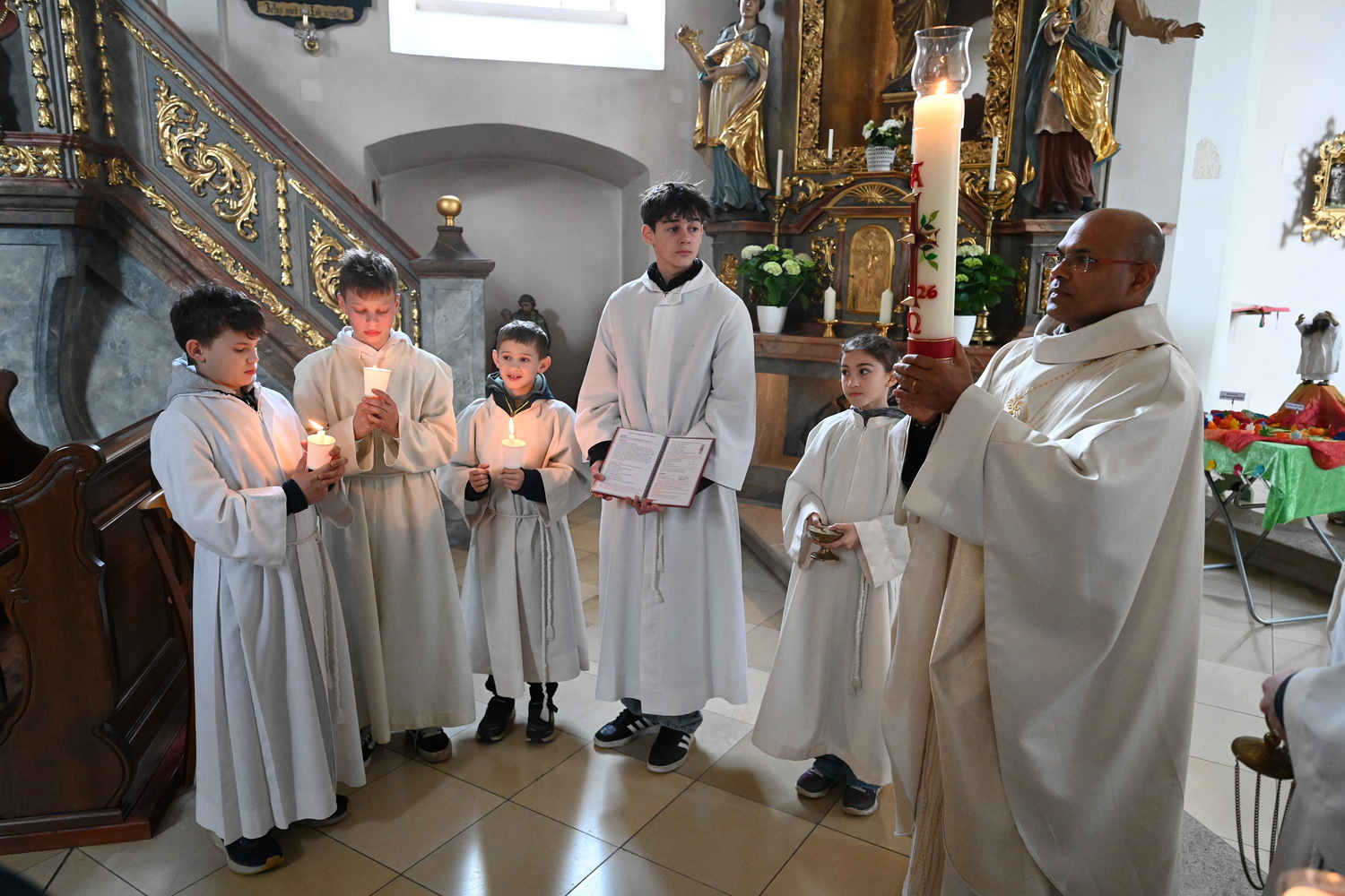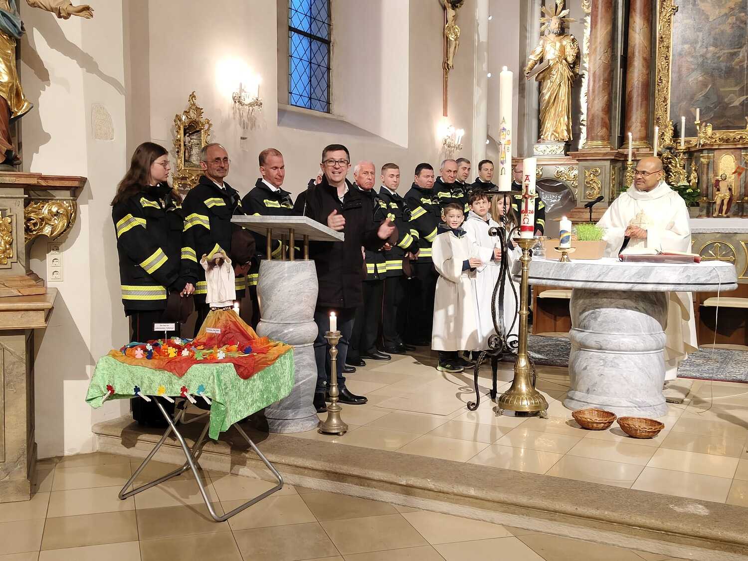 Eindrücke von der gemeinsamen Osternachtsfeier der Pfarren Gnadendorf und Wenzersdorf in der Kirche in Gnadendorf.