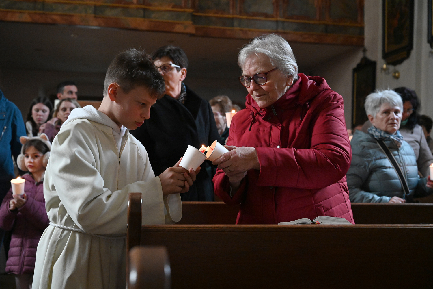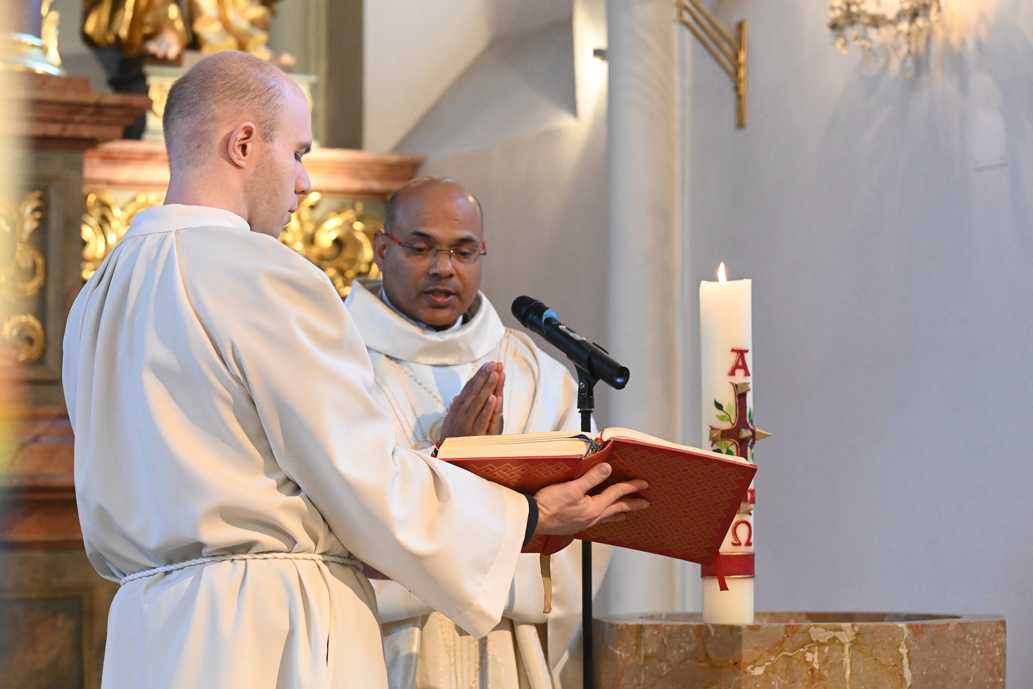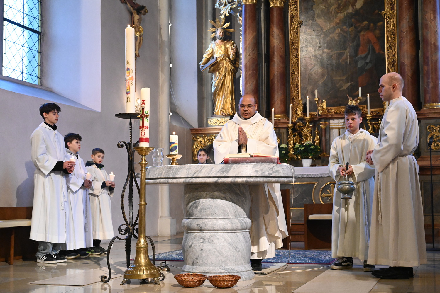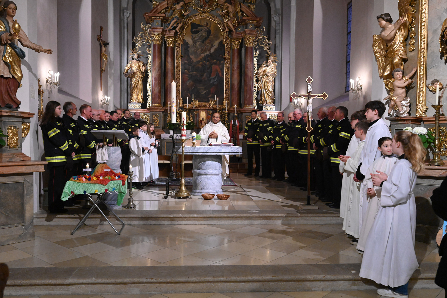 Eindrücke von der gemeinsamen Osternachtsfeier der Pfarren Gnadendorf und Wenzersdorf in der Kirche in Gnadendorf.